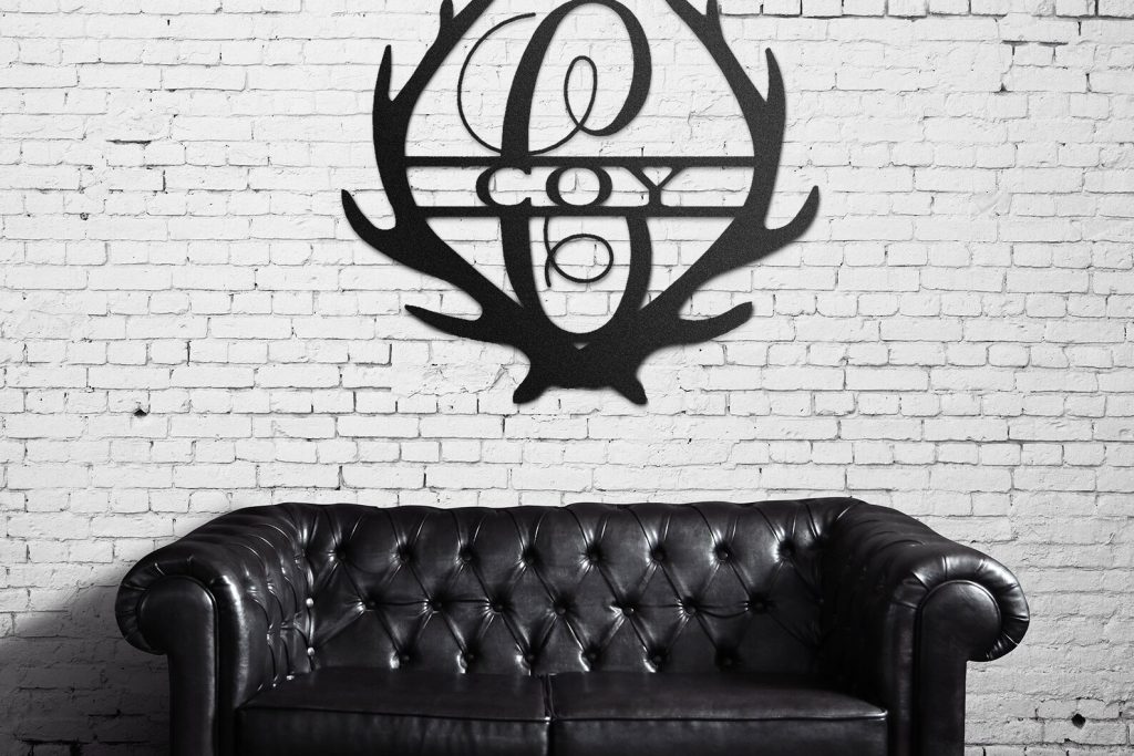 Custom Metal Deer Antler Sign, Personalized Monogram