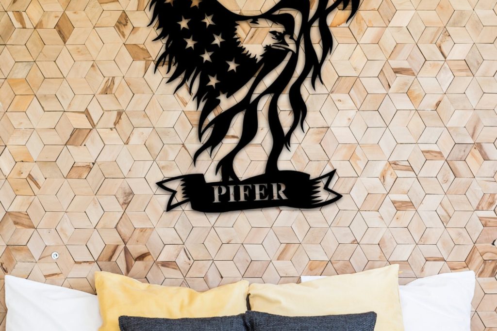 Be the first to review “Custom Metal Eagle Sign with American Flag”