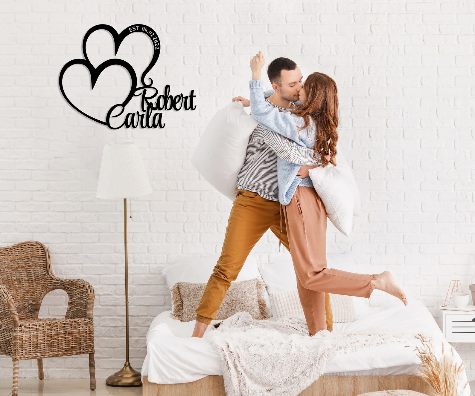 Custom Metal Wedding Gift for Couple, Personalized Family Name and Date Sign, Heart Sign, Anniversary Gift, Valentines Day, Metal Wall Decor