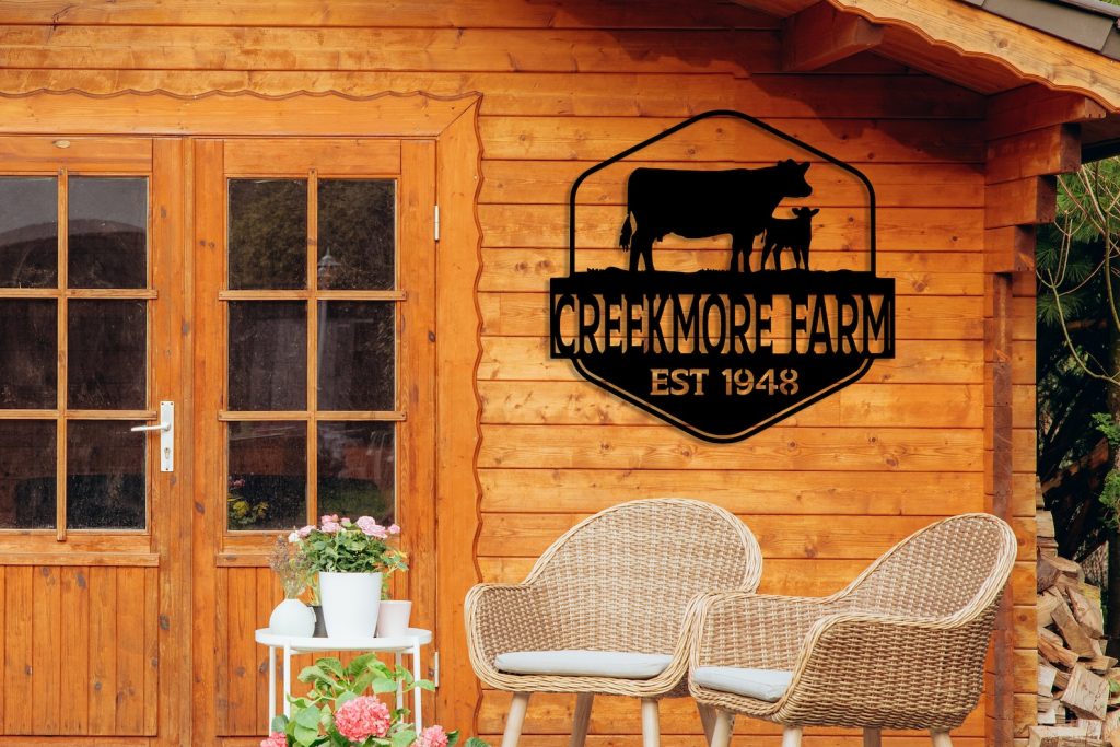 Be the first to review “Custom Metal Farm Name Sign with Cow Decor”