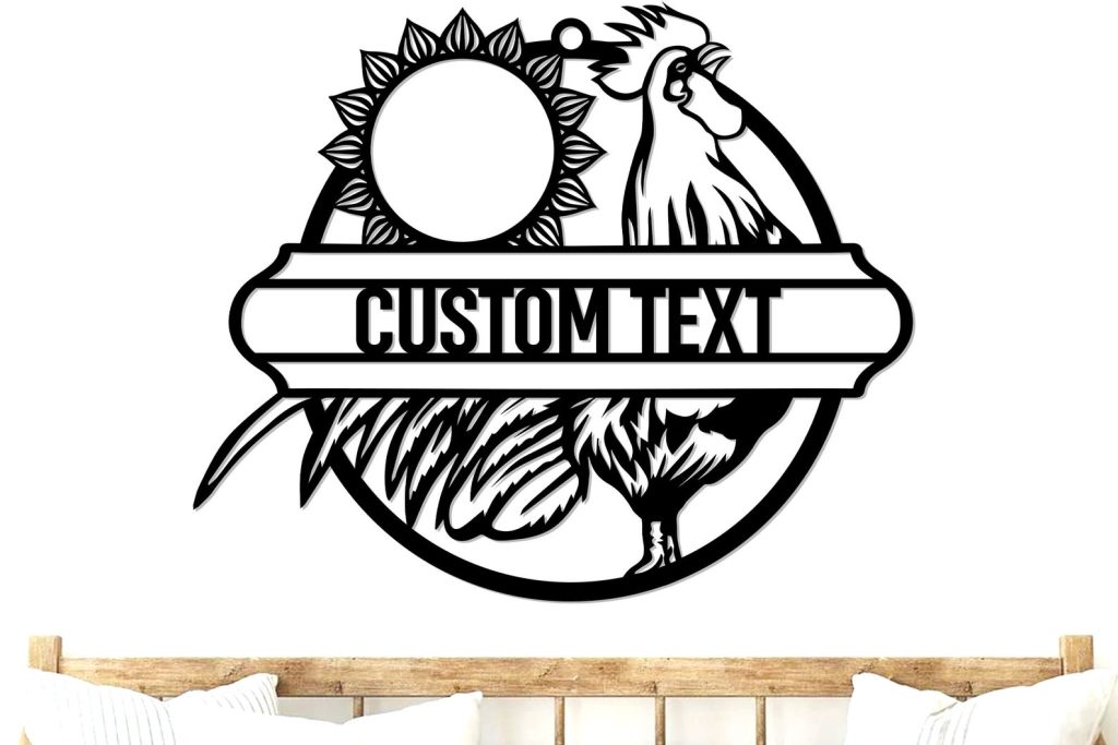 Elevate your home decor with a beautiful custom farm sign featuring your custom name, a rooster, and sun . Made with 18 gauge steel and powder coated in your choice of 5 colors, this custom farm wall art sign is built to withstand the outdoor elements for years of enjoyment.