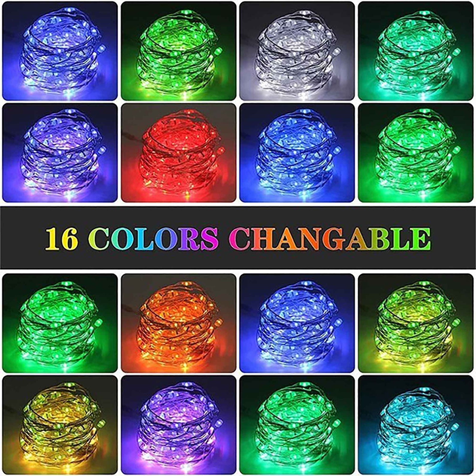 2. Remote control. You can use the remote control to turn the lights on and off, change the color to one of 16 vibrant colors, adjust the brightness, cycle through the various colors, and set the timer for 6 hours.