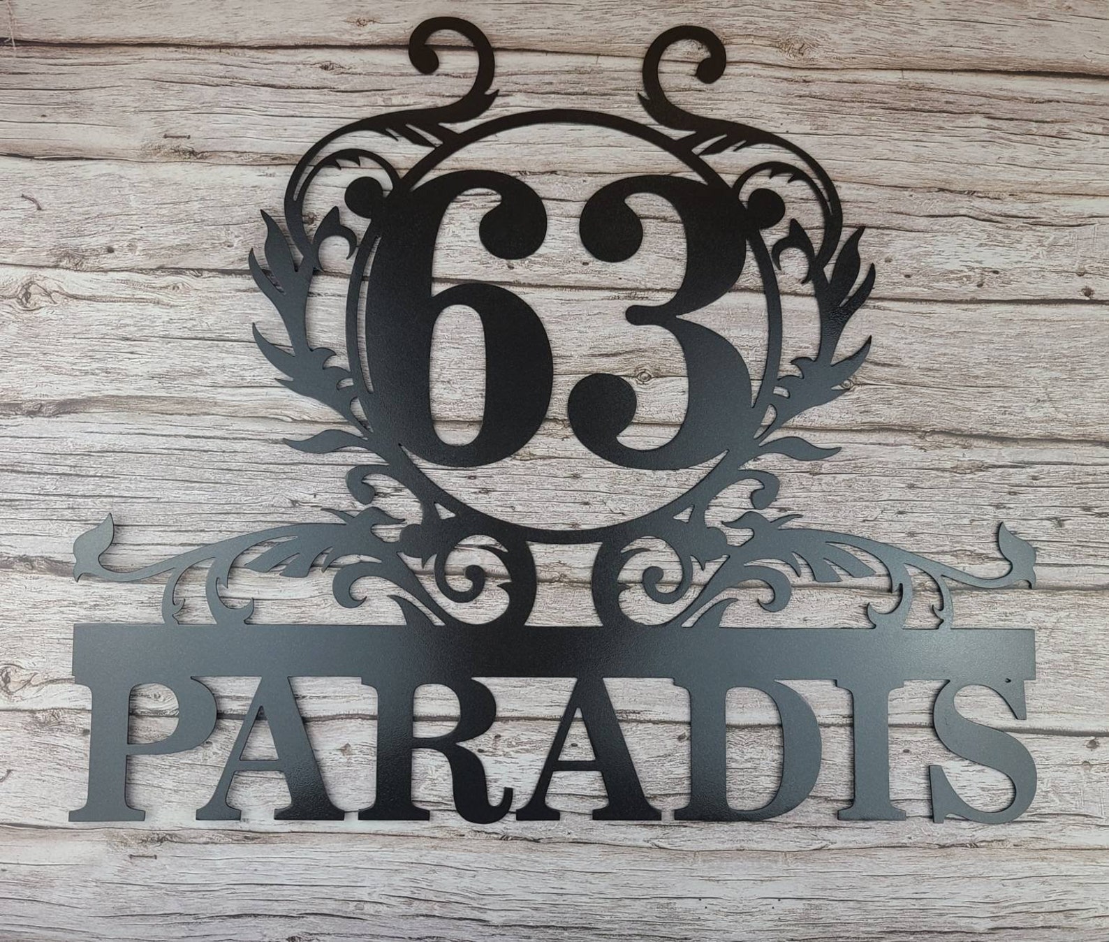 Custom metal house number sign personalized with your house number and last name