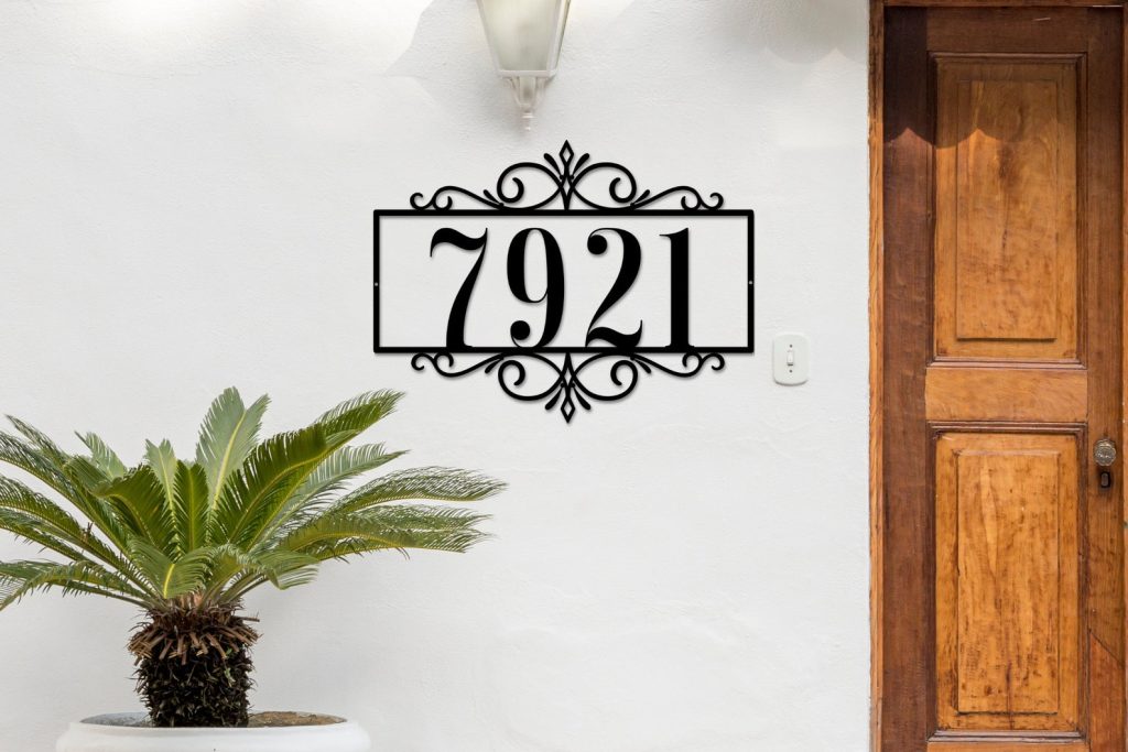 Enhance your outdoor decor with the trendy metal house number sign. This address plaque is made up with 18 gauge steel which is durable and environment resistant. It will give the touch of elegance to your wall by adding this steel sign as a front door sign, yard or any place of your choice!
