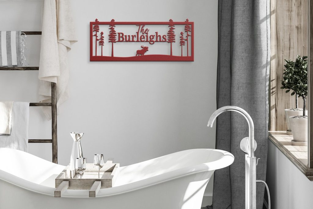 Celebrate family pride and a love for the great outdoors with our Custom Metal Sign. Expertly crafted to feature your last name alongside a majestic moose set against a wilderness backdrop, this unique sign captures the essence of nature9;s beauty and family unity. Perfect for cabins, lodges, or homes with a rustic charm, this personalized piece adds a touch of wilderness allure and personalized character to any space.