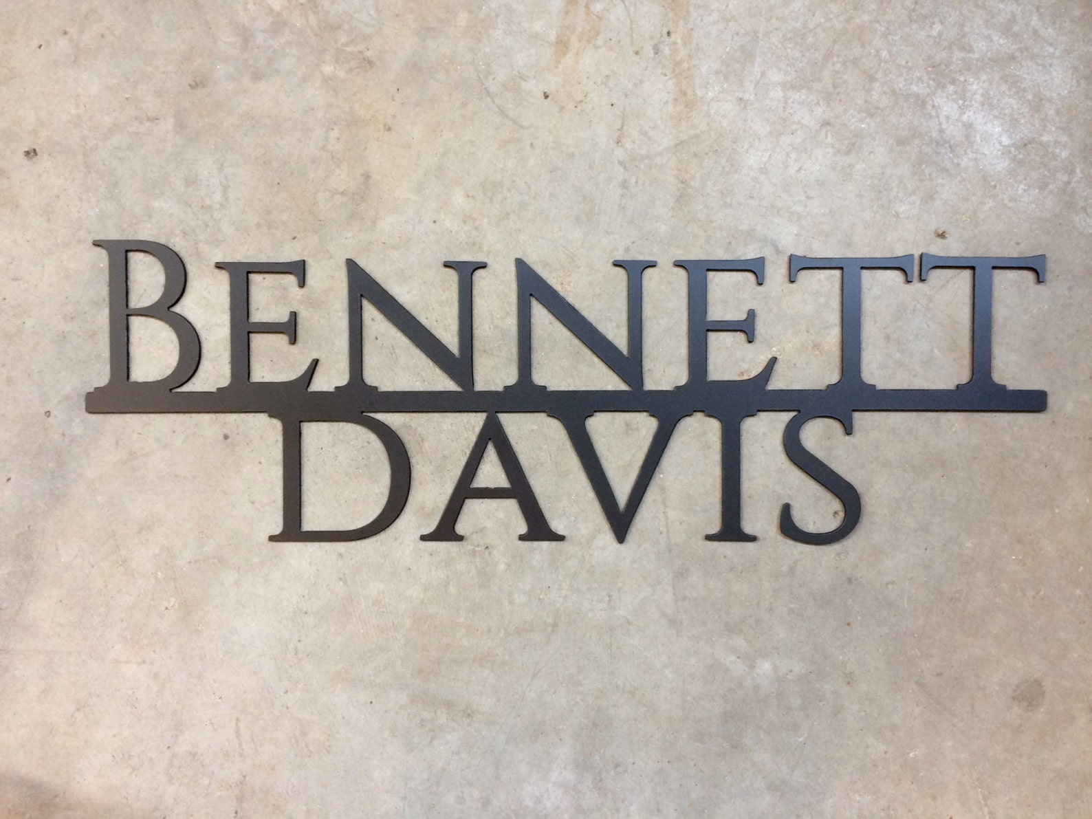 This custom metal name sign is a perfect gift for anyone or great addition for a nursery! We take your name and use a plasma CNC table to produce this classy, clean, metal sign. This product is great to hang inside your home, baby nursery, patio, in your man cave, and many more places. Any name can be made. This is a great gift within your family, and makes a perfect accessory to any space.
