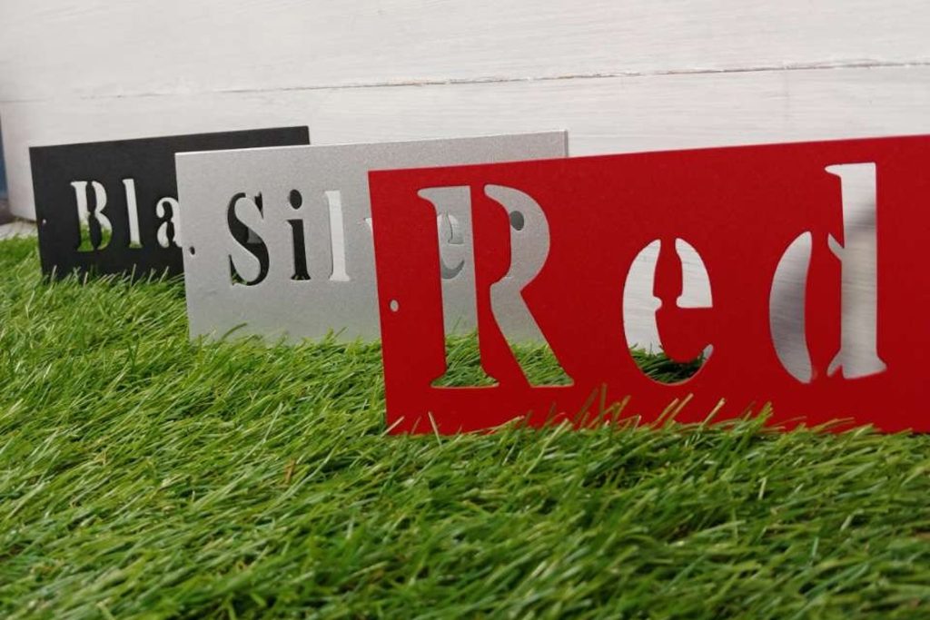 Our signs are made from high quality steel and cut to the highest standards using the latest laser technology and powder coated in your choice of color. We use 18 Gage Carbon Steel. Hang on a wall, door, or entrance. This item is powder coated and can be hung indoors or outdoors.