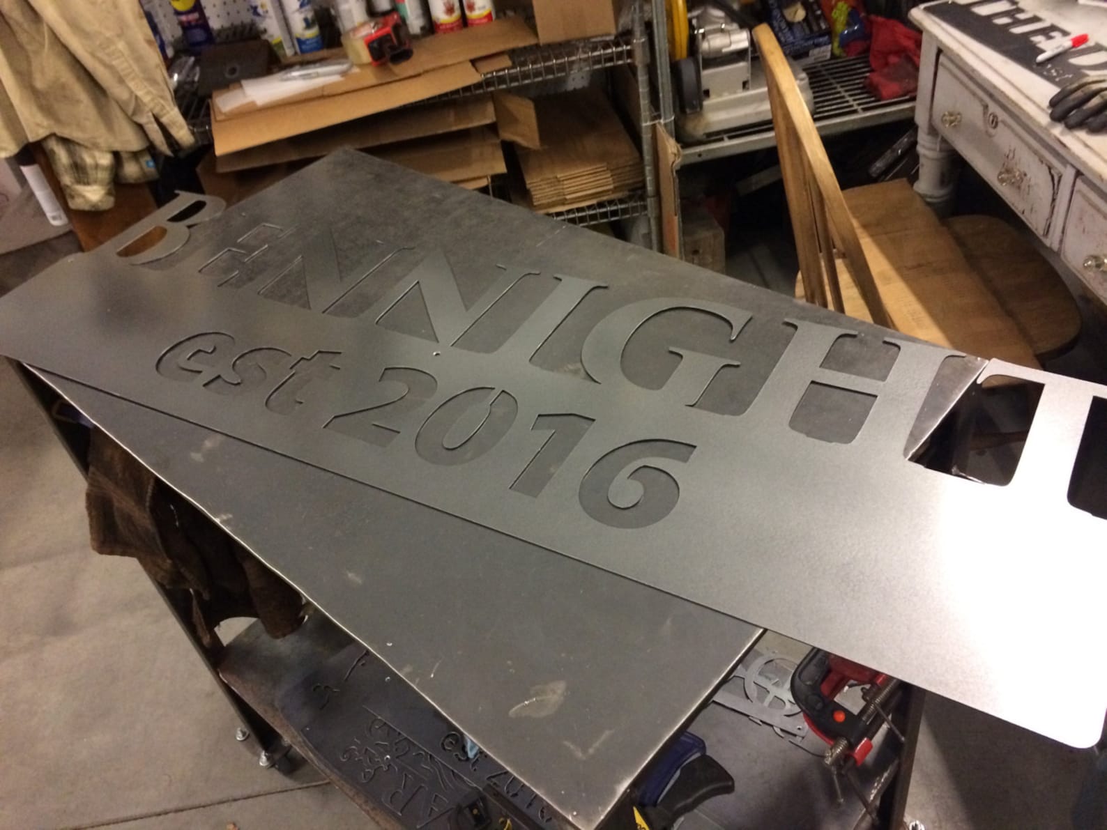 This personalized metal sign is a perfect addition to your home, office, shop, or garage! This product is great to hang near your front entrance, inside your home, on your door or patio, in your man cave, and many more places. Items pictured are hot rolled steel and clear coated. This is a great gift for family and friends.