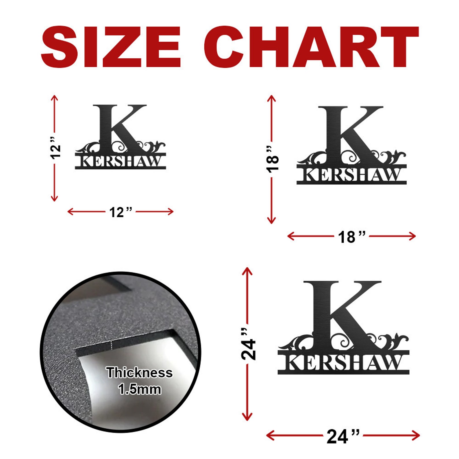 INDOOR or OUTDOOR DECOR — Upgrade your garage, shed or beautify the walls with this metal name signs. This customized metal sign can be used for workshop, garage, tool shed and more. Display your familys initials in or around your home. There are six sizes of signs for you to choose, you can choose the proper size according to the hanging position.