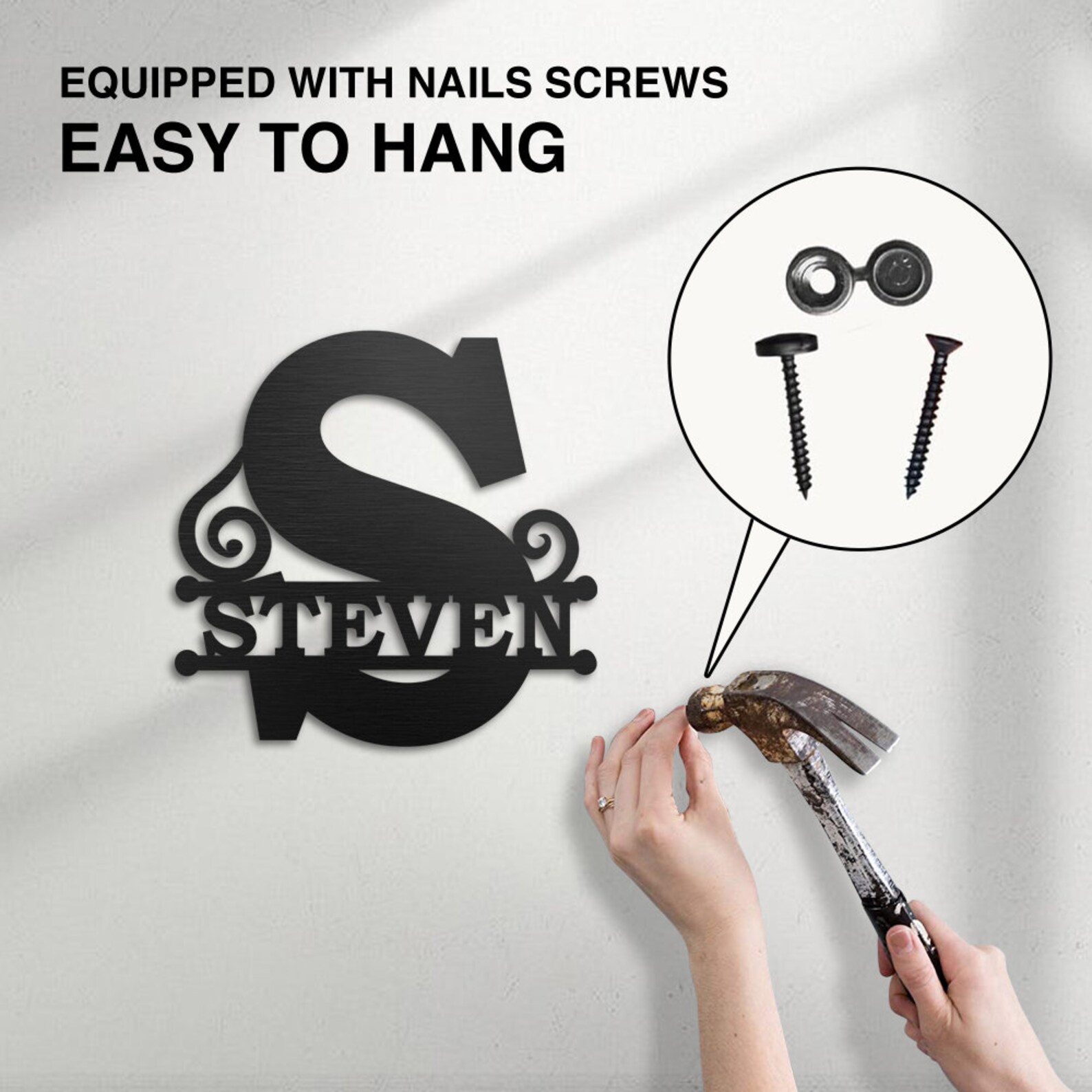 asy to hang — There are holes for you to hang metal signs. You just need to find a suitable place and position it with a hammer. The design of two or more holes can make the name sign more stable, dont worry about it falling or something. The nut can hide the screw without affecting its beauty.