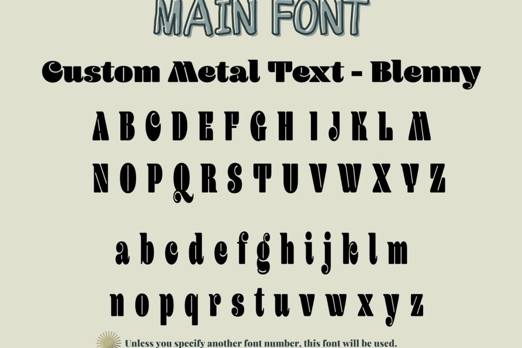 You can see the listings we created in detail for other Fonts in the Customize Metal Words Category of our Store.