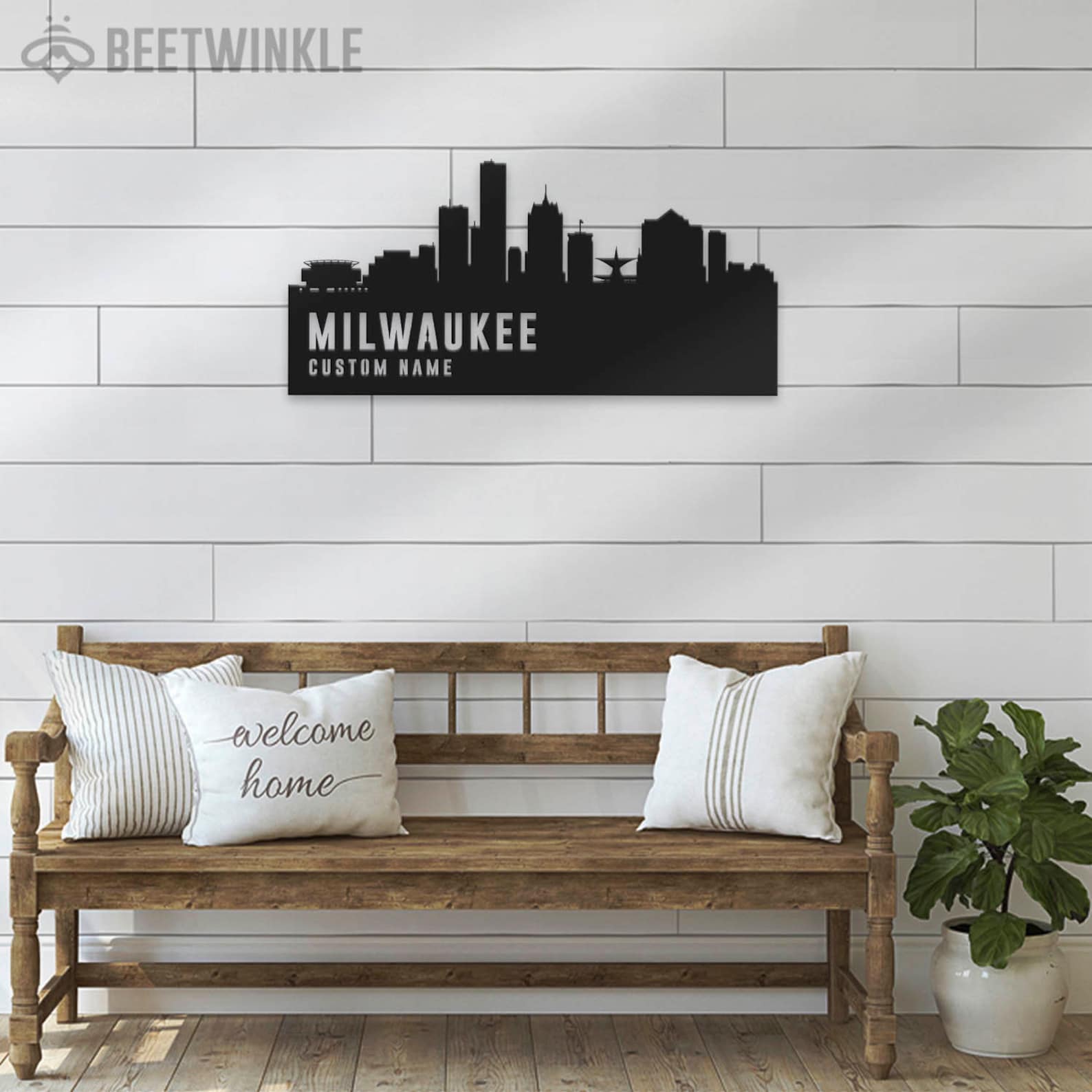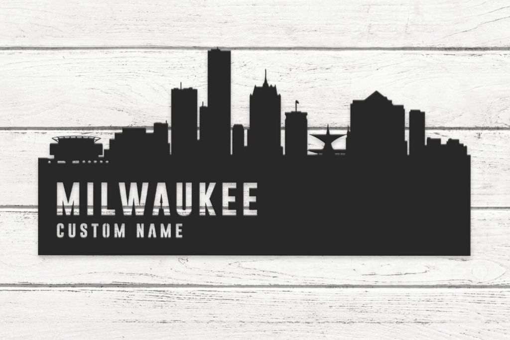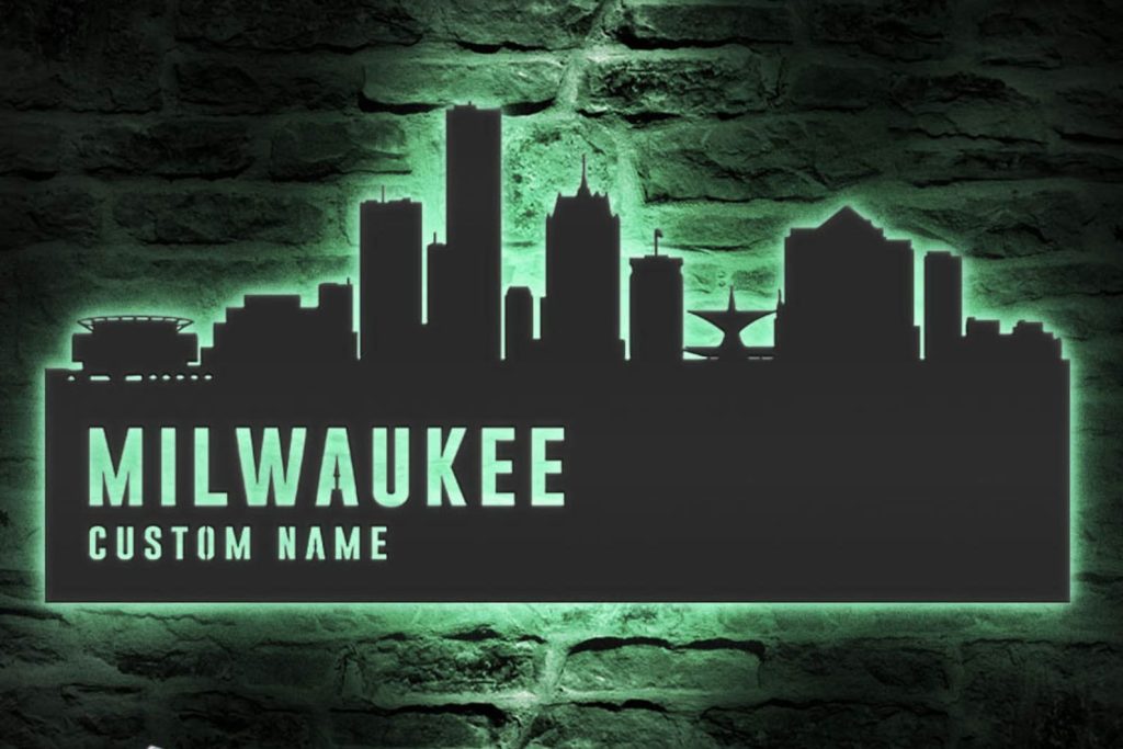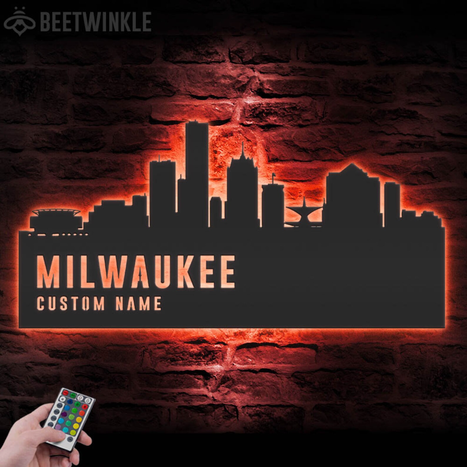 Custom Milwaukee Skyline Metal Wall Art with LED & Wisconsin Name
