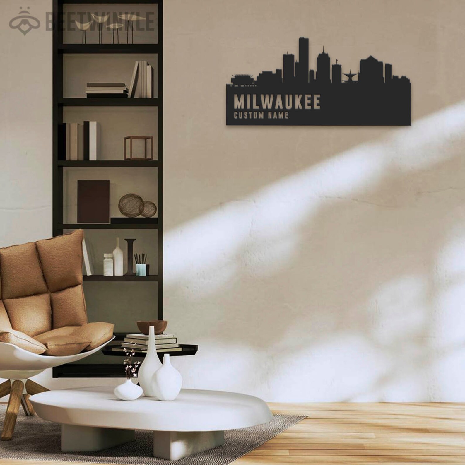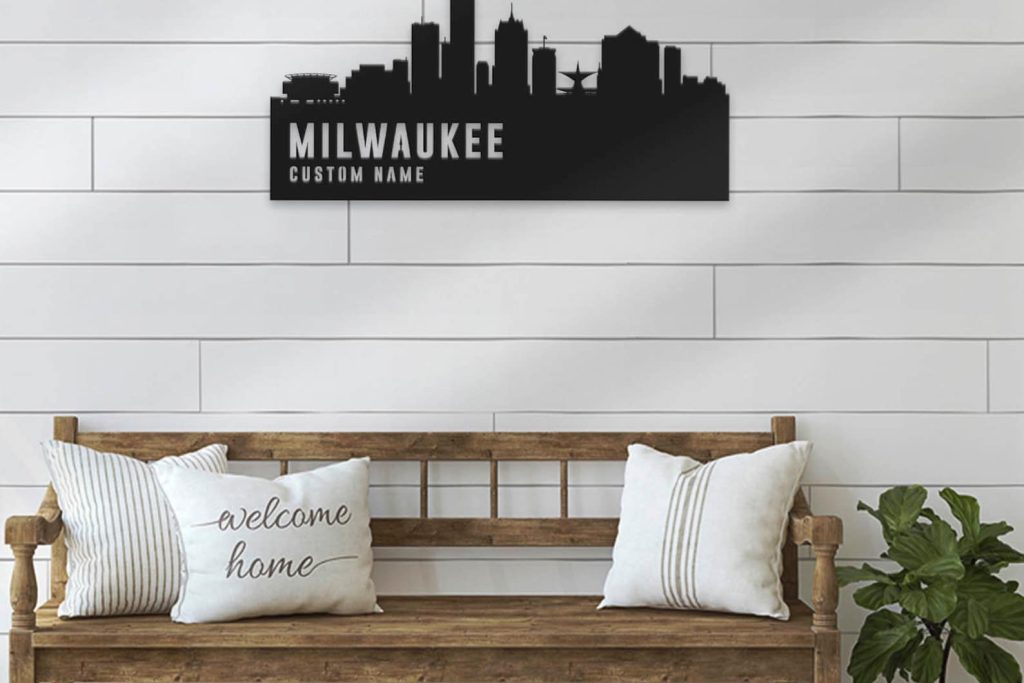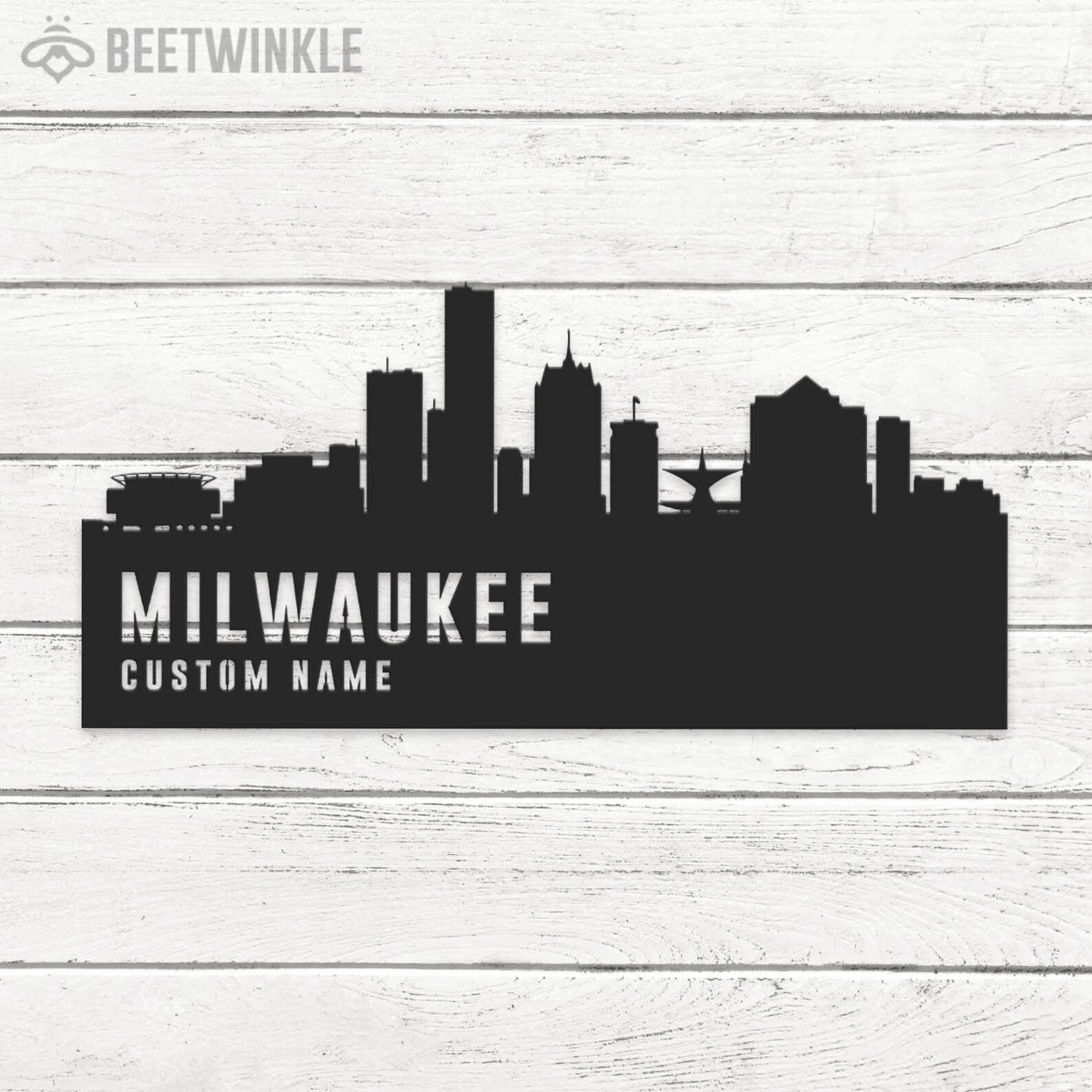 Custom Milwaukee Skyline Metal Wall Art with LED & Wisconsin Name
