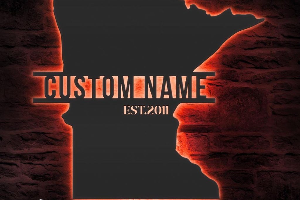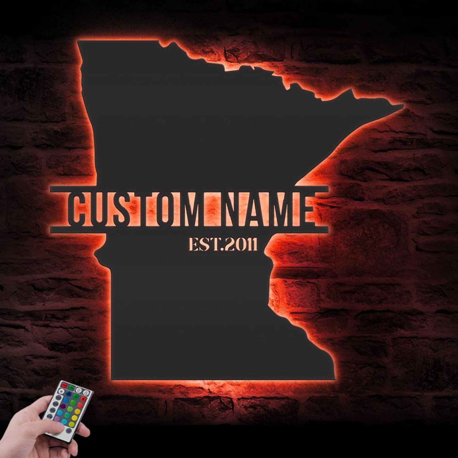 Be the first to review “Custom Minnesota Map Metal Wall Art with LED Light, Personalized Name Sign”