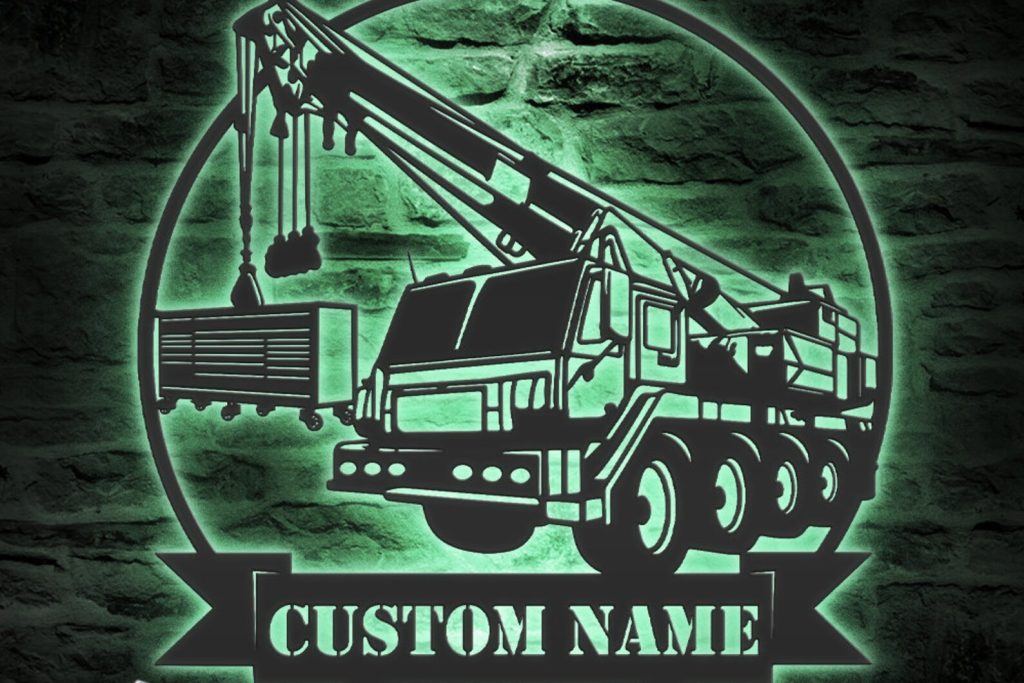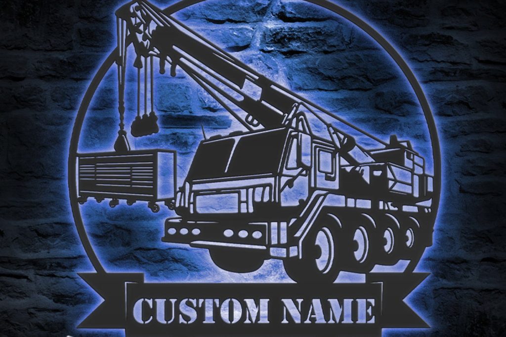 Be the first to review “Custom Mobile Crane Metal Art with LED & Driver Name”