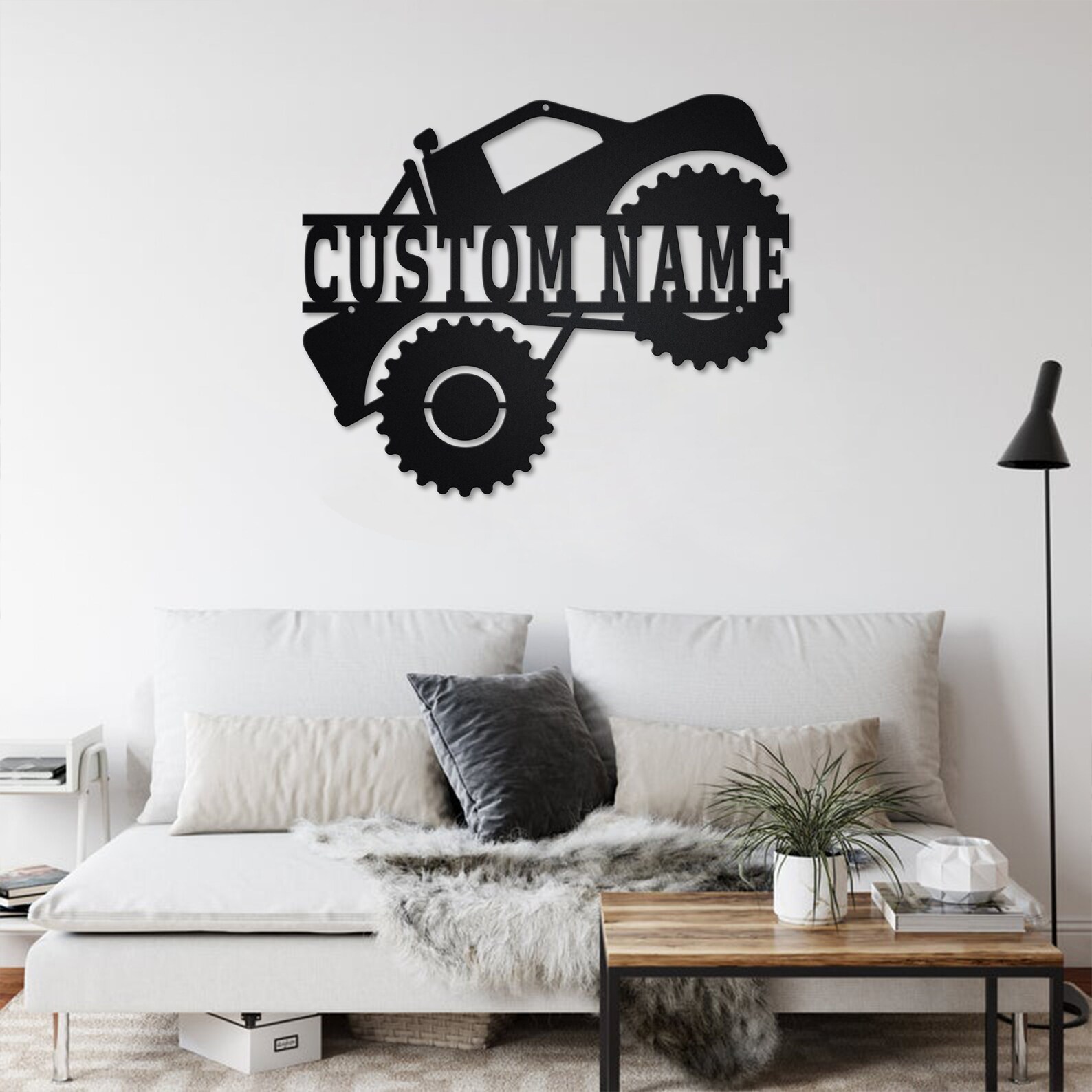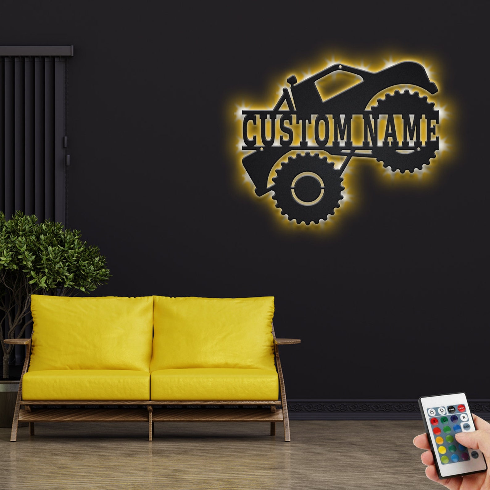 Custom Monster Truck Metal Wall Art with LED Light, Personalized Name Sign