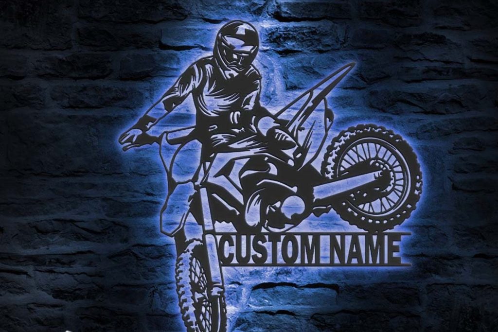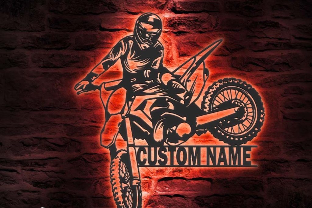 Be the first to review “Custom Motocross Biker Metal Wall Art – LED Lights, Personalized Sign”