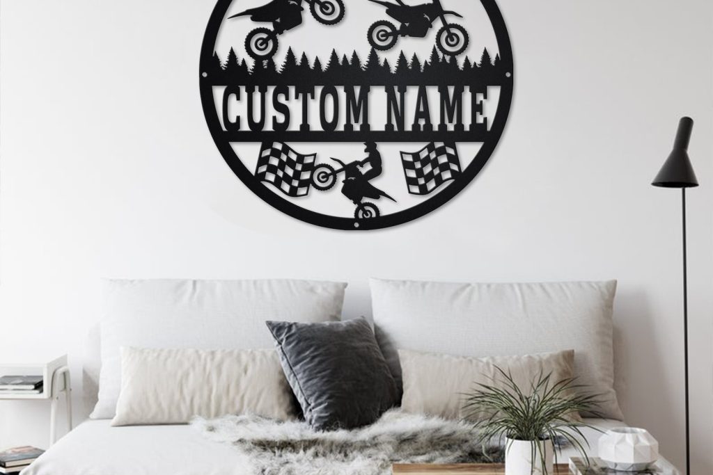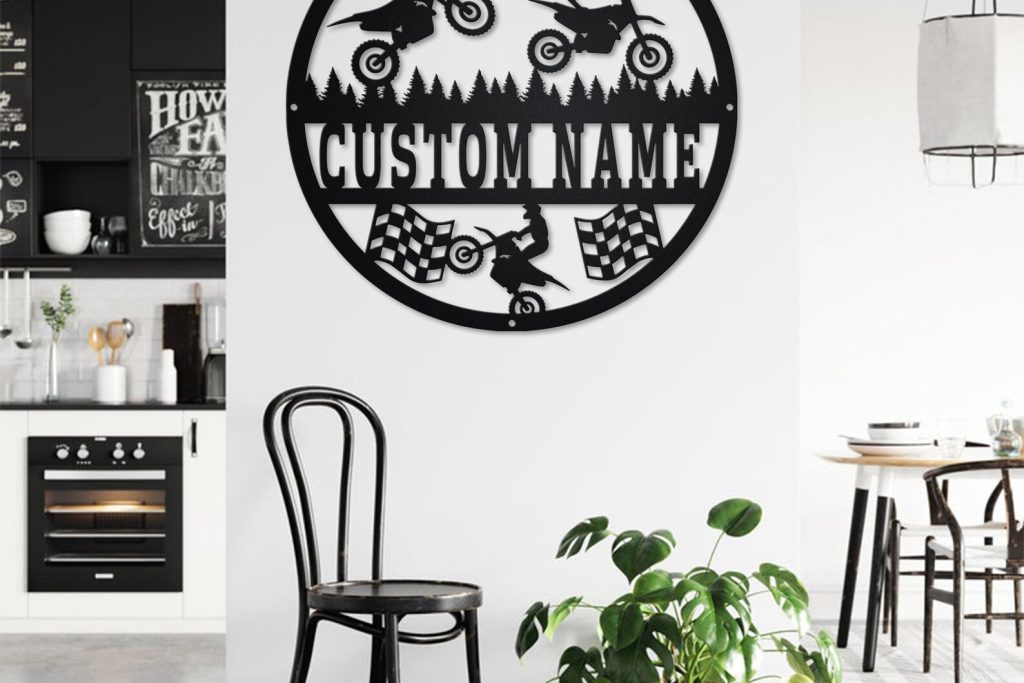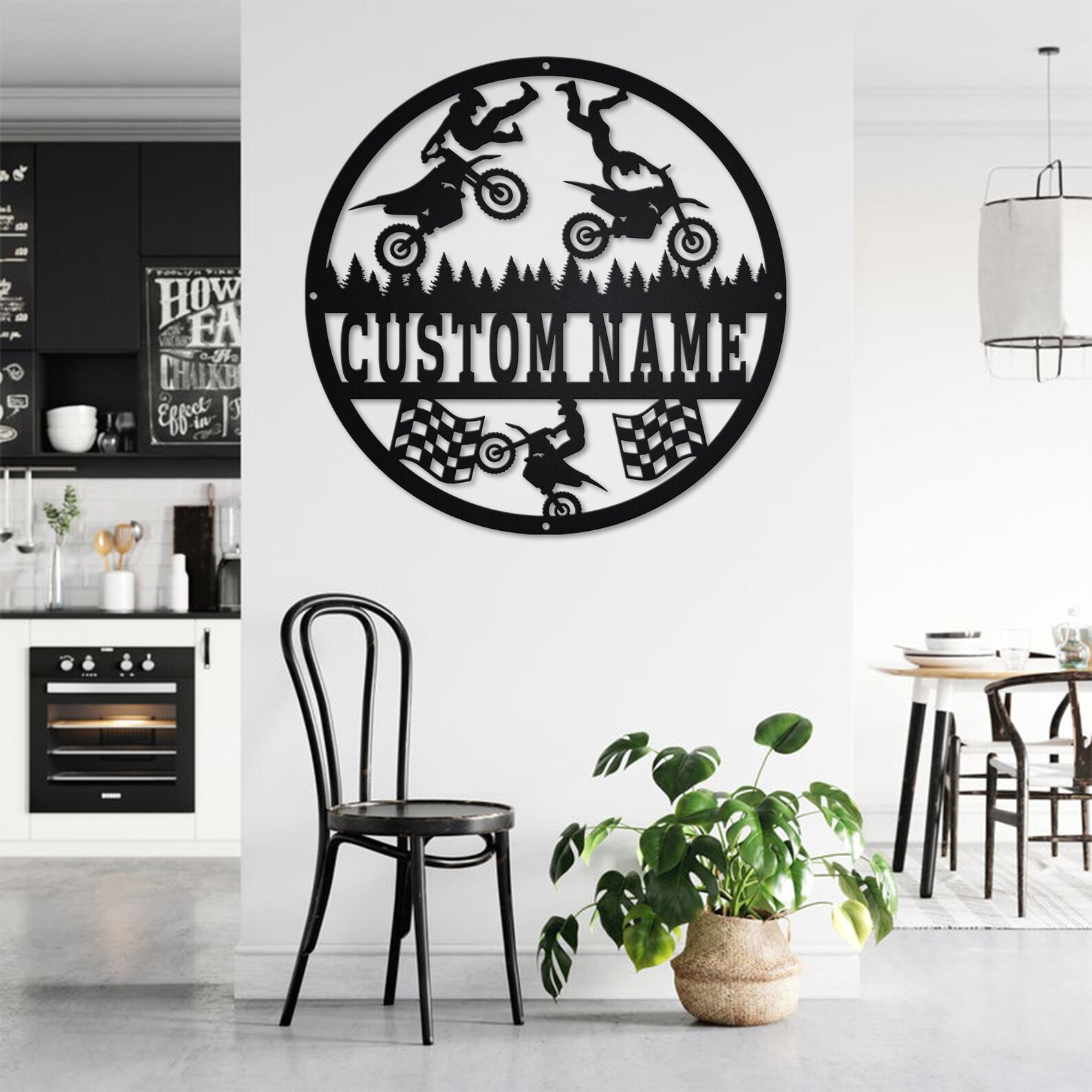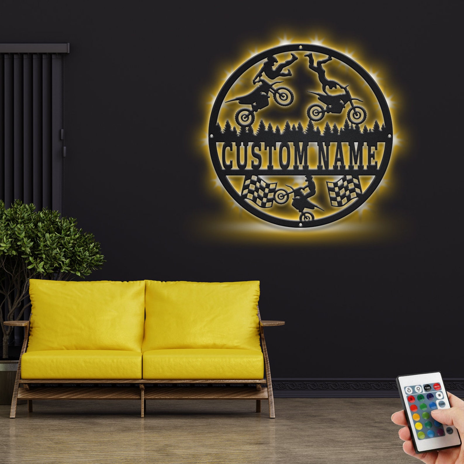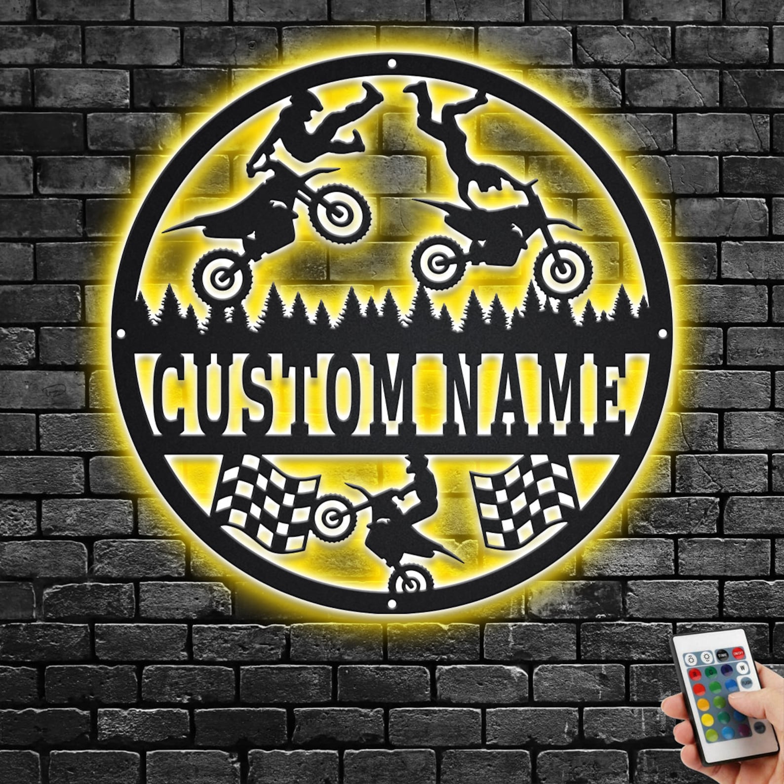 Custom Motocross Dirt Bike Metal Wall Art – LED Light, Personalized Biker Name Sign