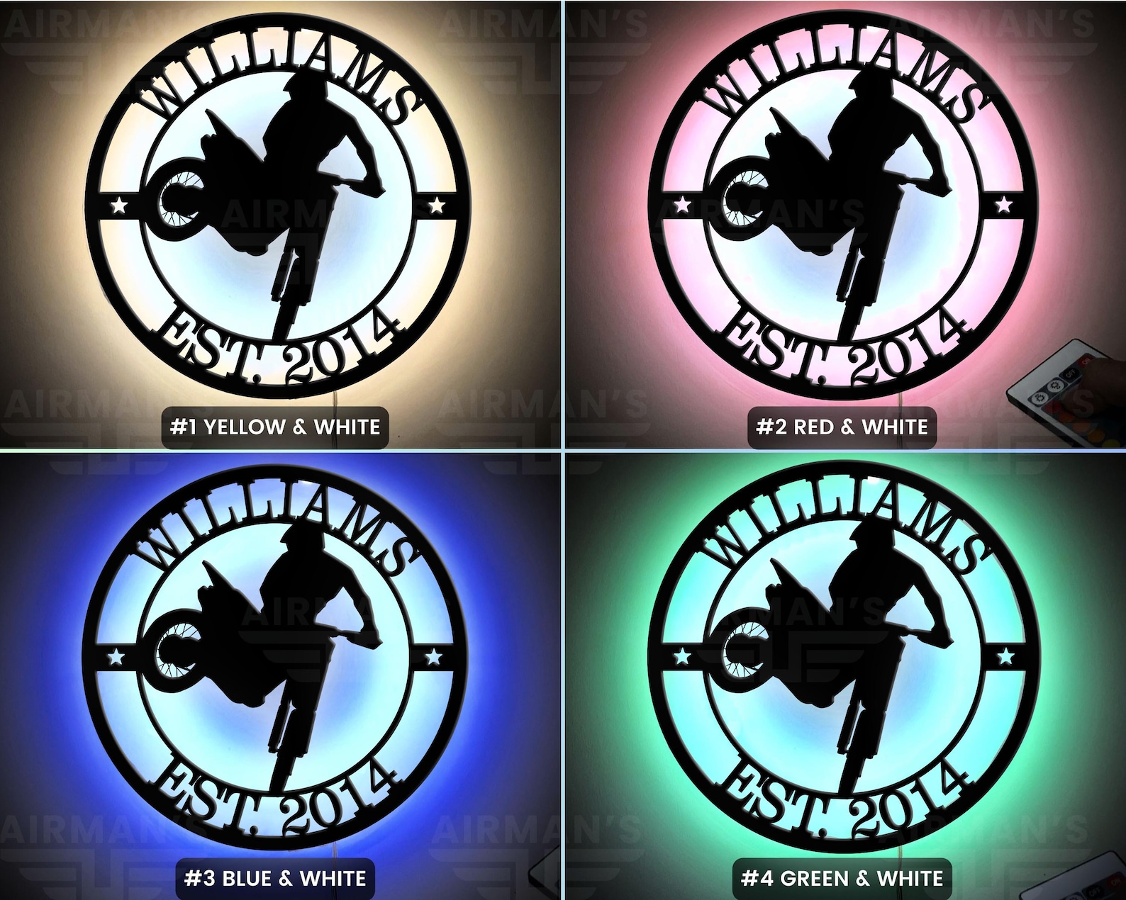 Custom Motocross LED Sign, Personalized Dirt Bike Metal Wall Art, Motorcycle Decor