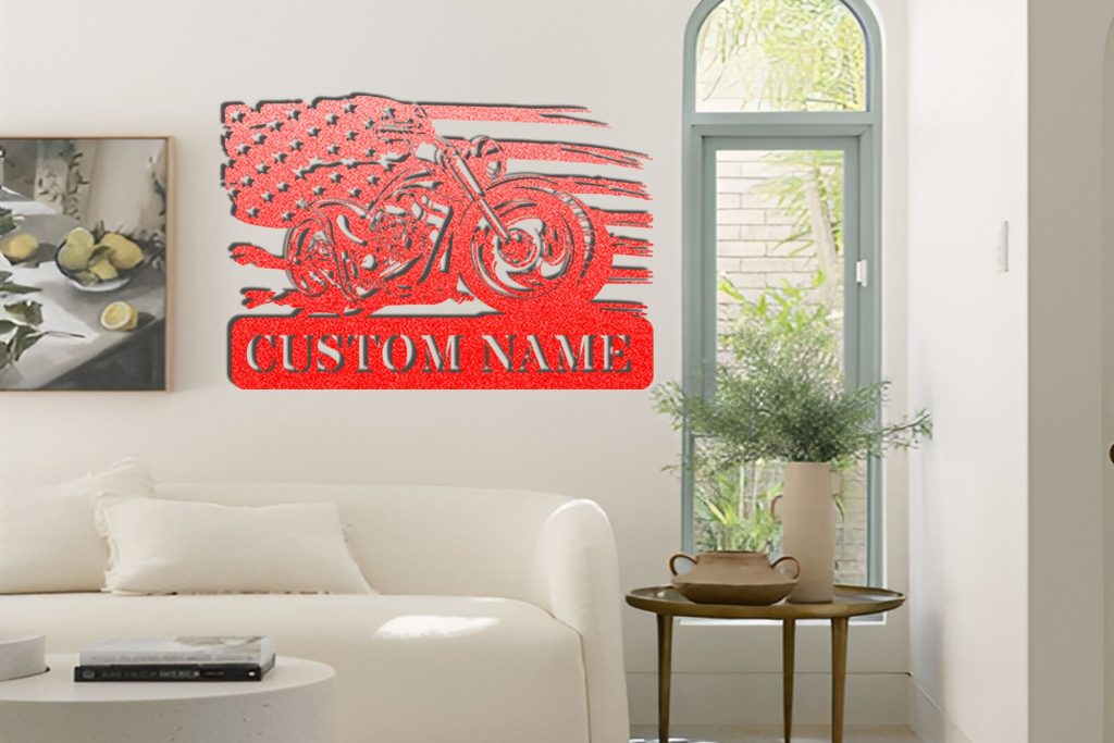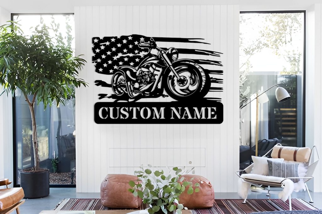 Custom Motorcycle Metal Wall Art,Personalized Sign,Motorcycle Art,Personalized Biker Gift,USA Flag Art,Bike Lover Gift,Fathers Day gifts,Motor Bike Metal Sign,Biker Gifts