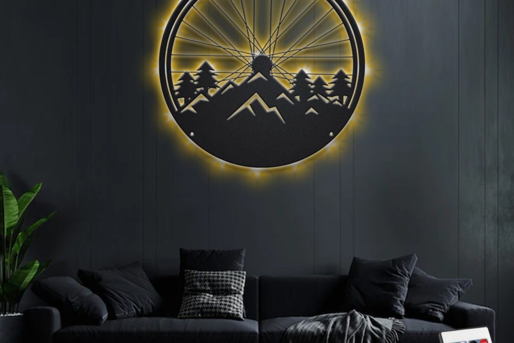 Custom Mountain Bike Metal Sign with LED – Room Decoration