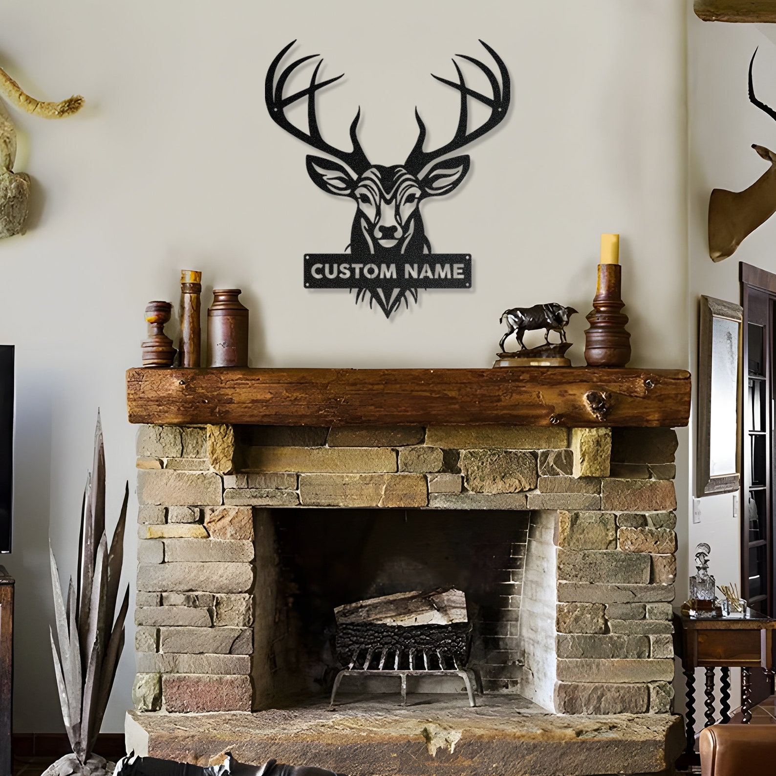 Custom Name Deer Metal Wall Decor, Unique Wall Decor, Metal Wall Art, Personalized Metal Decor, Lake House Wall Art, Living Room Wall Art