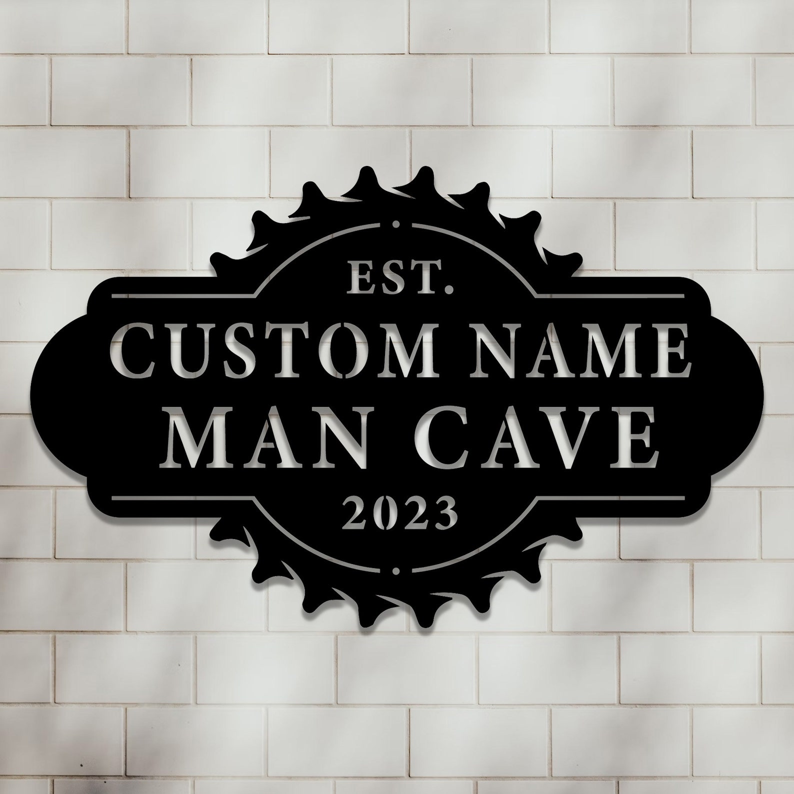 Custom Metal Cut Out Name Sign, with the name of your choice. Please see picture for details. This sign shows a raw metal finish, but we would paint your sign black.