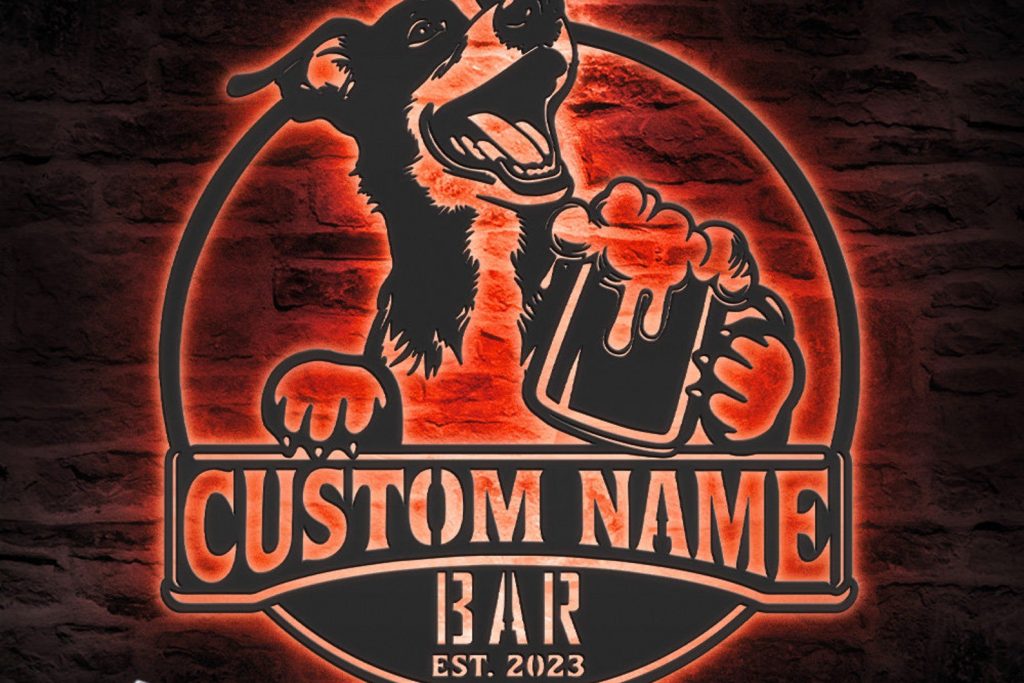 Custom New Zealand Heading Dog Beer Pub Metal Wall Art – LED Light, Personalized Sign