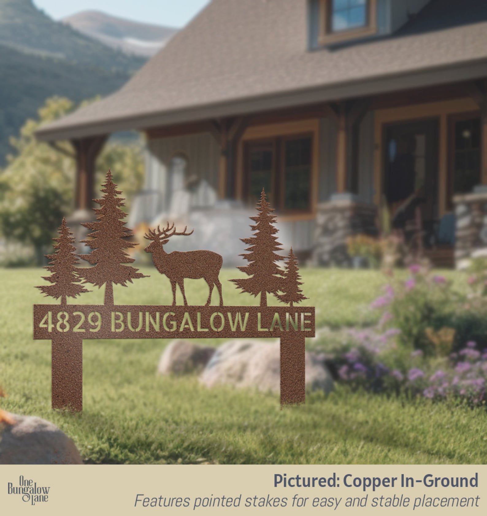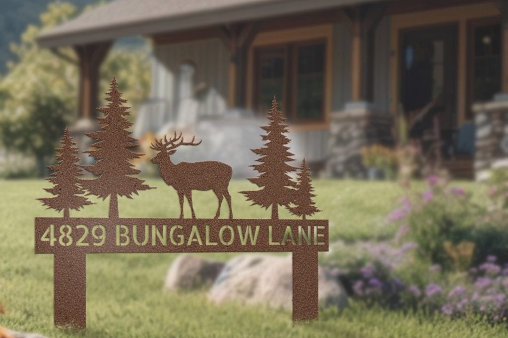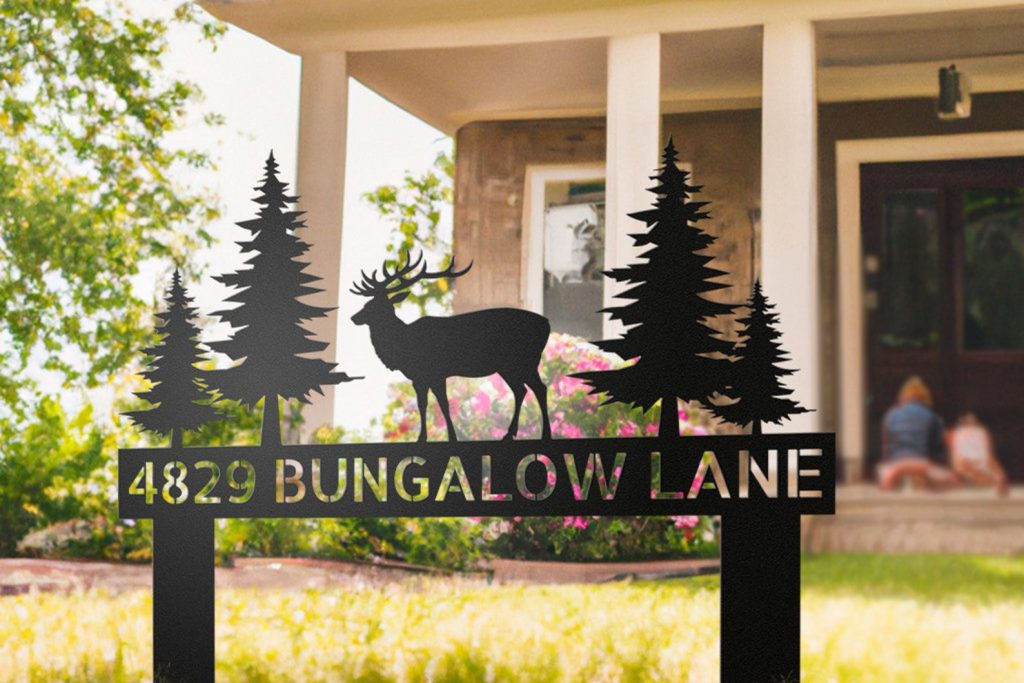 Personalized AddresstAddress Sign YardtCustom Family NametOutdoor Metal StreettStreet Number SigntFront Lawn GroundtSign with StakestCustom AirBNB DecortMountain Deer Elktrustic farmhousetStreet Name PorchtFront Door Signstdriveway rock