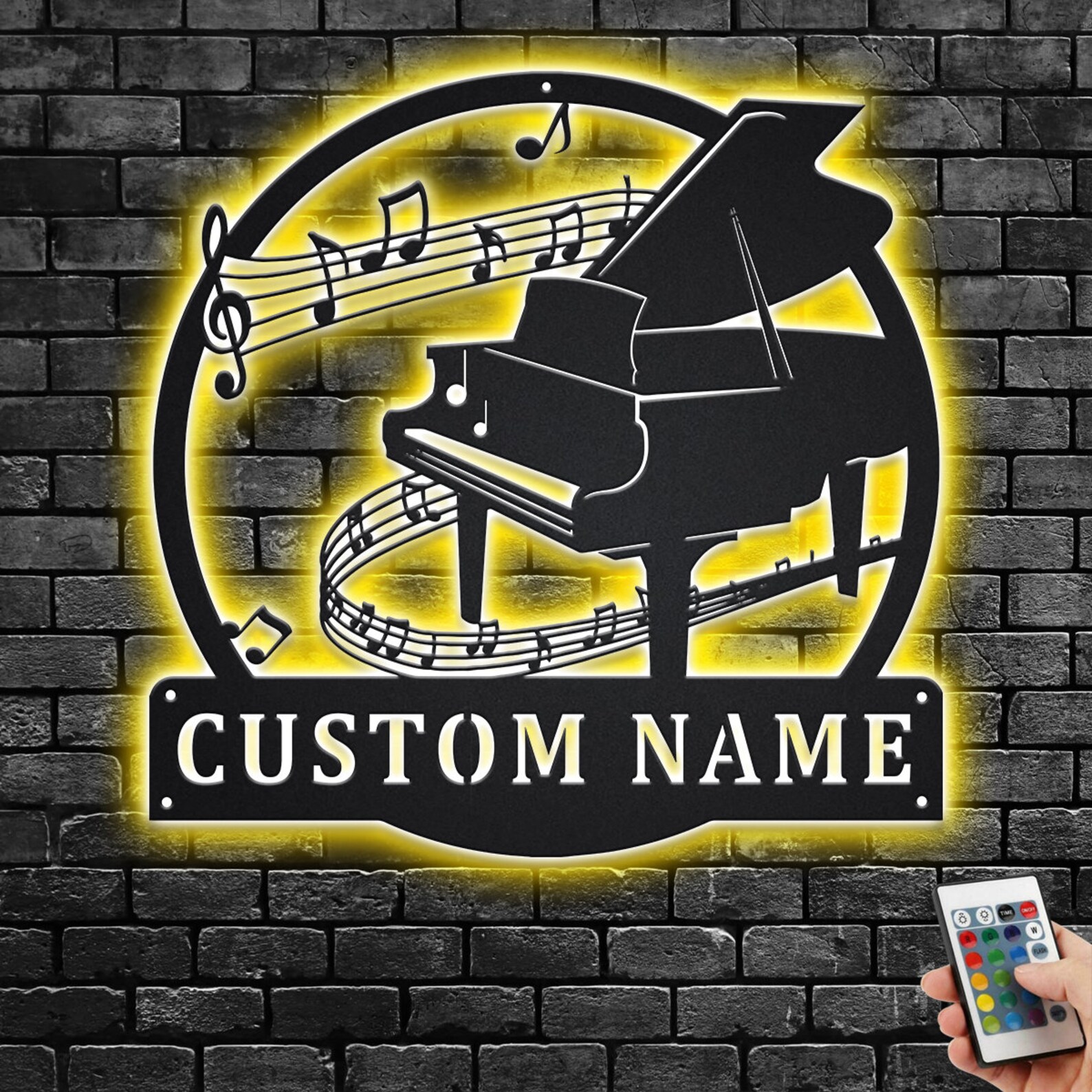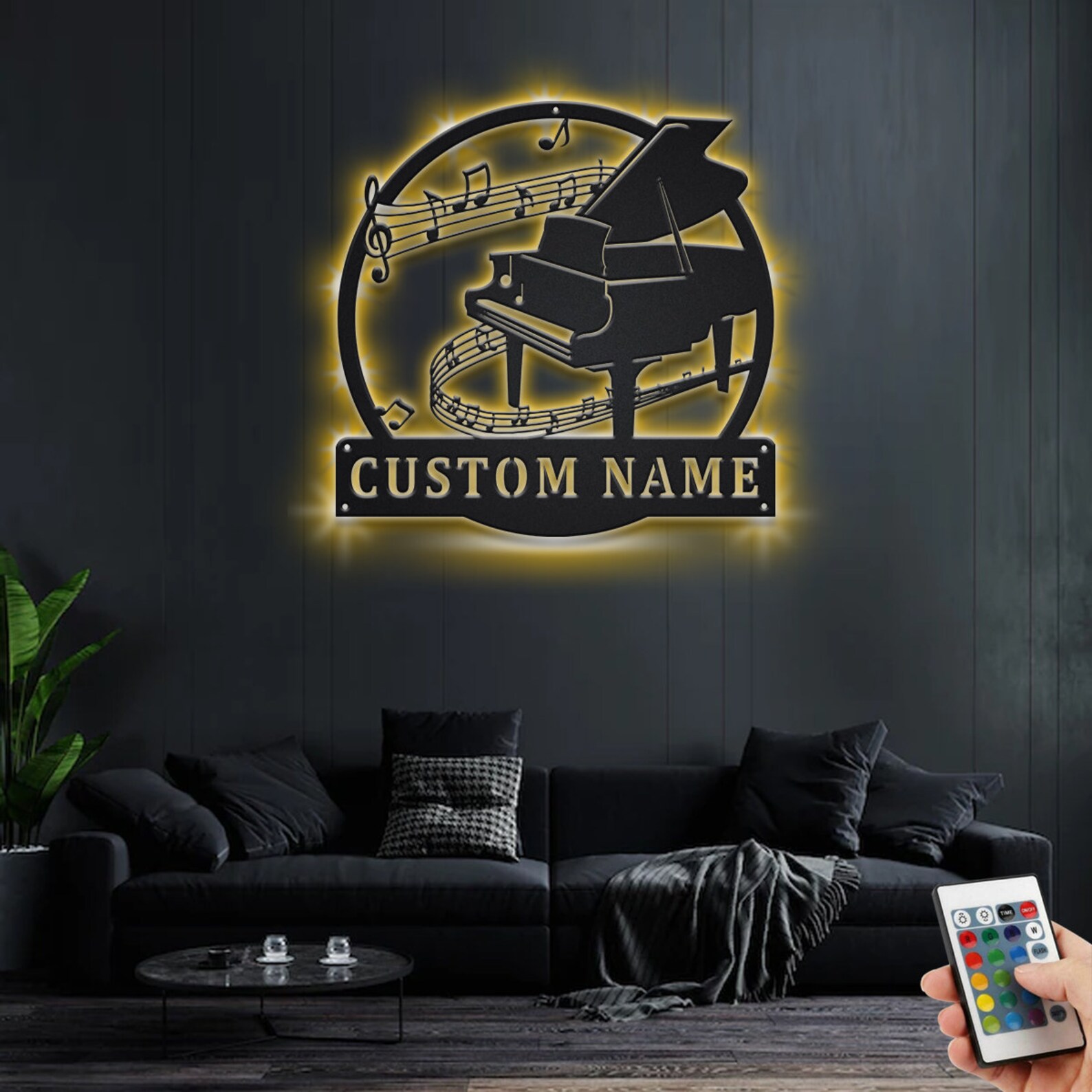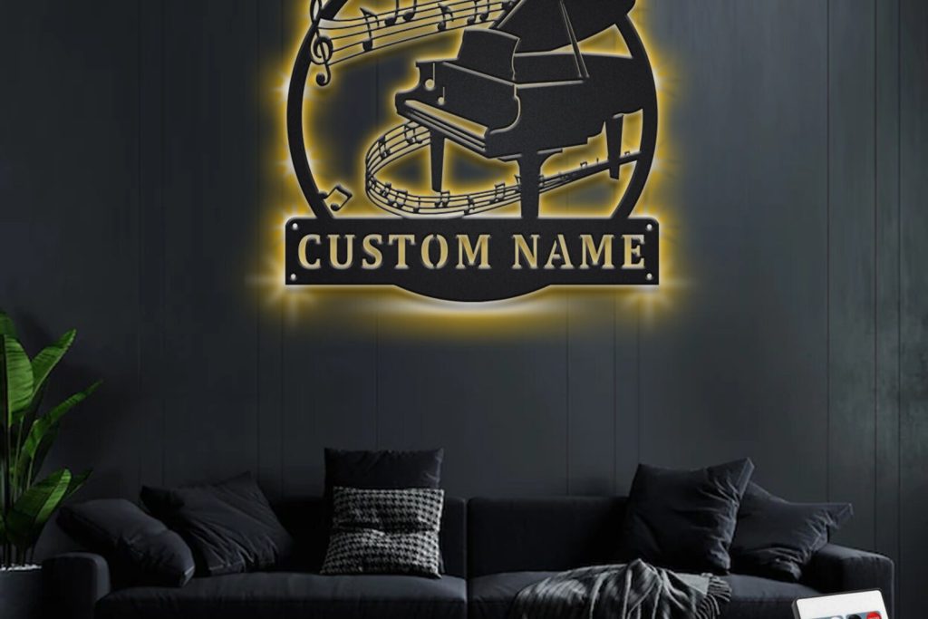 Custom Piano Metal Sign with LED – Pianist Room Decoration