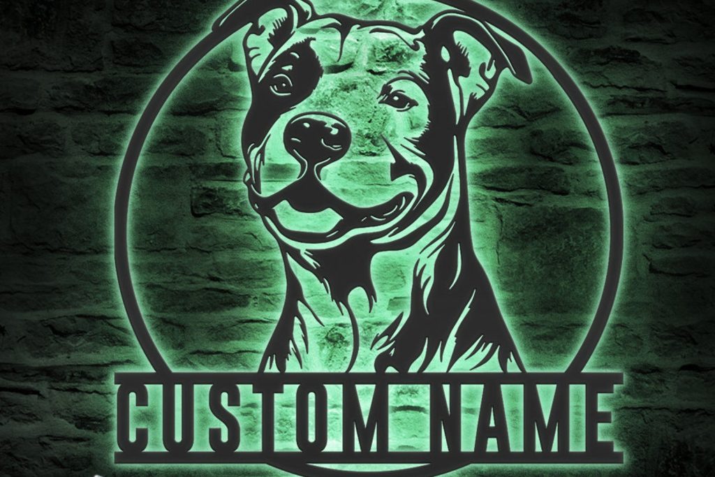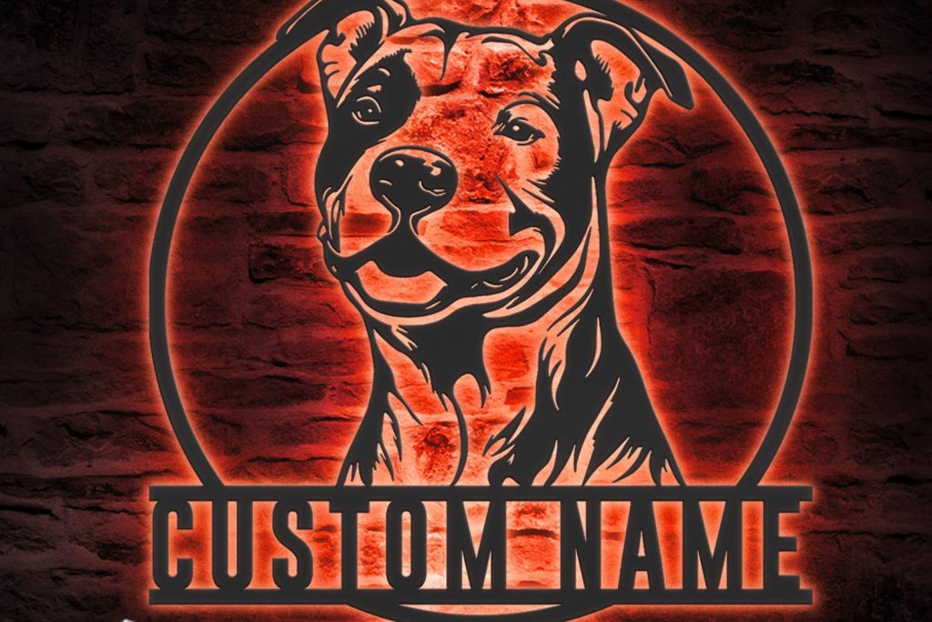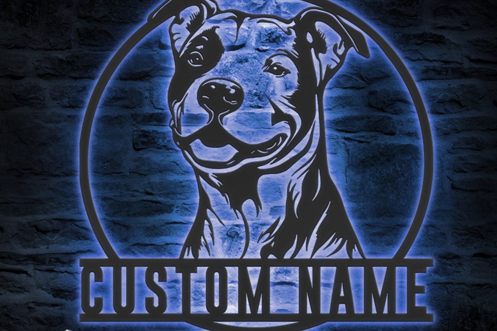 Be the first to review “Custom Pitbull Metal Wall Art – LED Light”