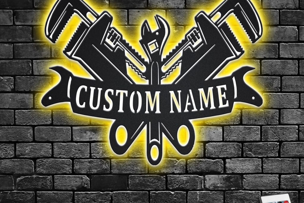 Custom Plumber Metal Sign with LED, Home Decor