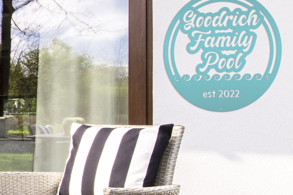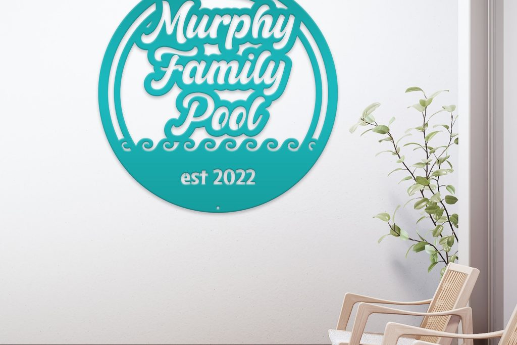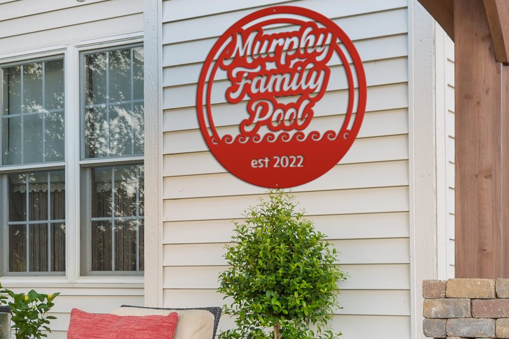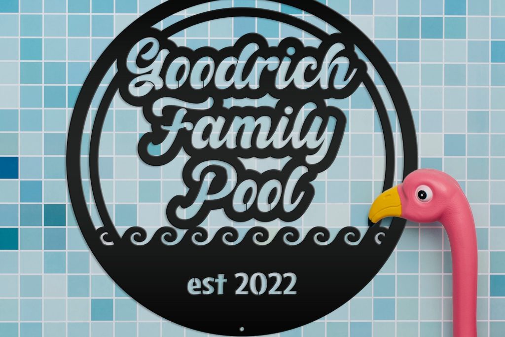 This custom pool sign is perfect for outdoor personalized patio family sign. It is made of metal and is perfect for tropical pool house decor. It makes a unique compliment as a welcome sign for deck or lanai area. It makes a great gift for your dad on father9;s day, wedding registry gift, or as a housewarming gift.