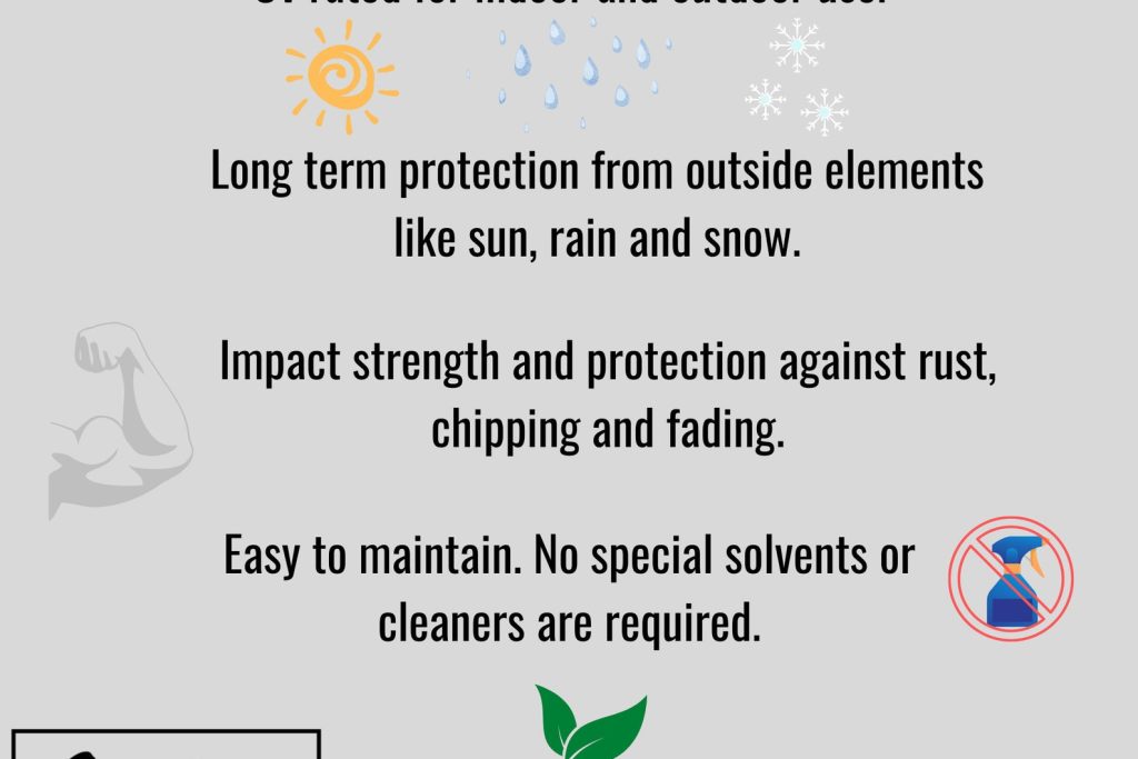 Available in multiple powder coat colors. Our powder coat is UV rated for added weather protection from rusting, chipping and the outside elements like sun, rain and snow.