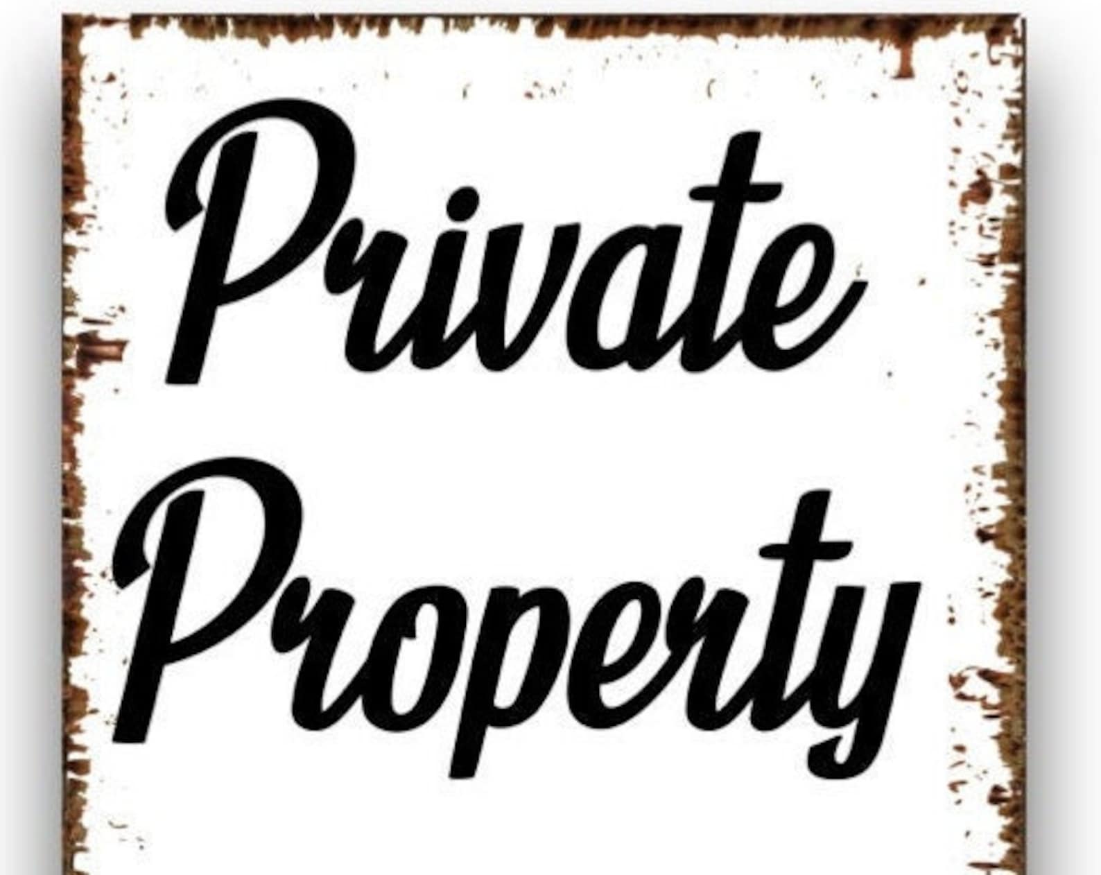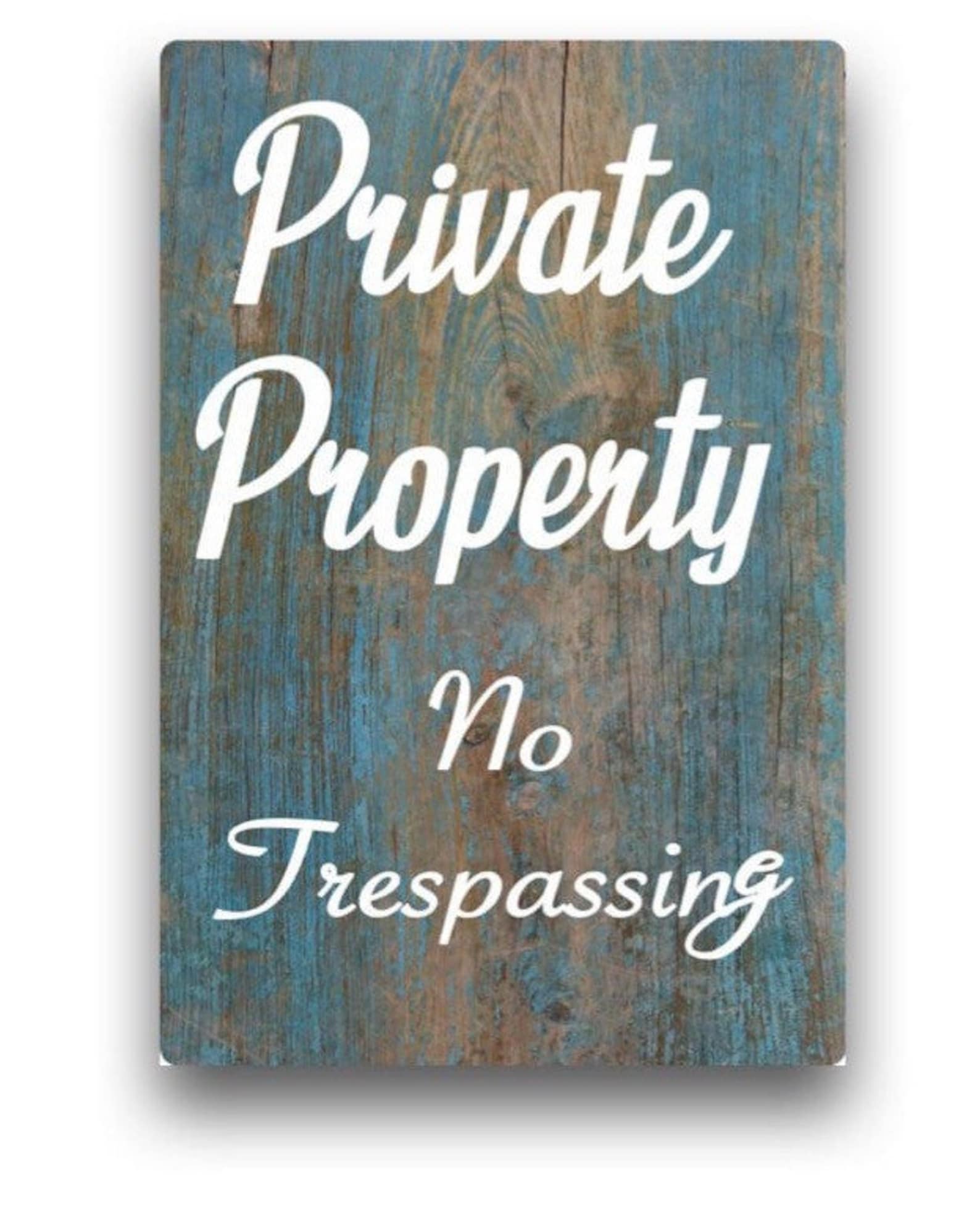 Private Property No Trespassing -choose from 3 backgrounds – Barn wood, Grey Wood, White Crackle- wood style backgrounds – Metal Sign Door Plaque – (Note not actual wood so smooth and safe to the touch)