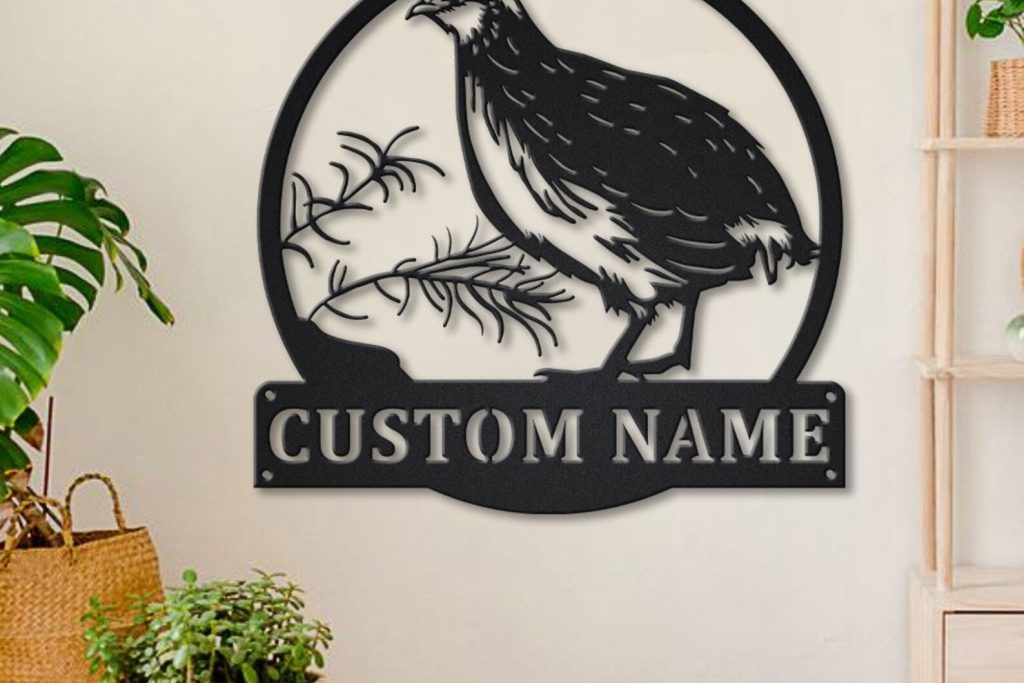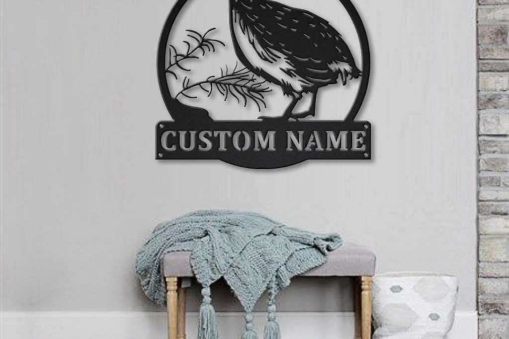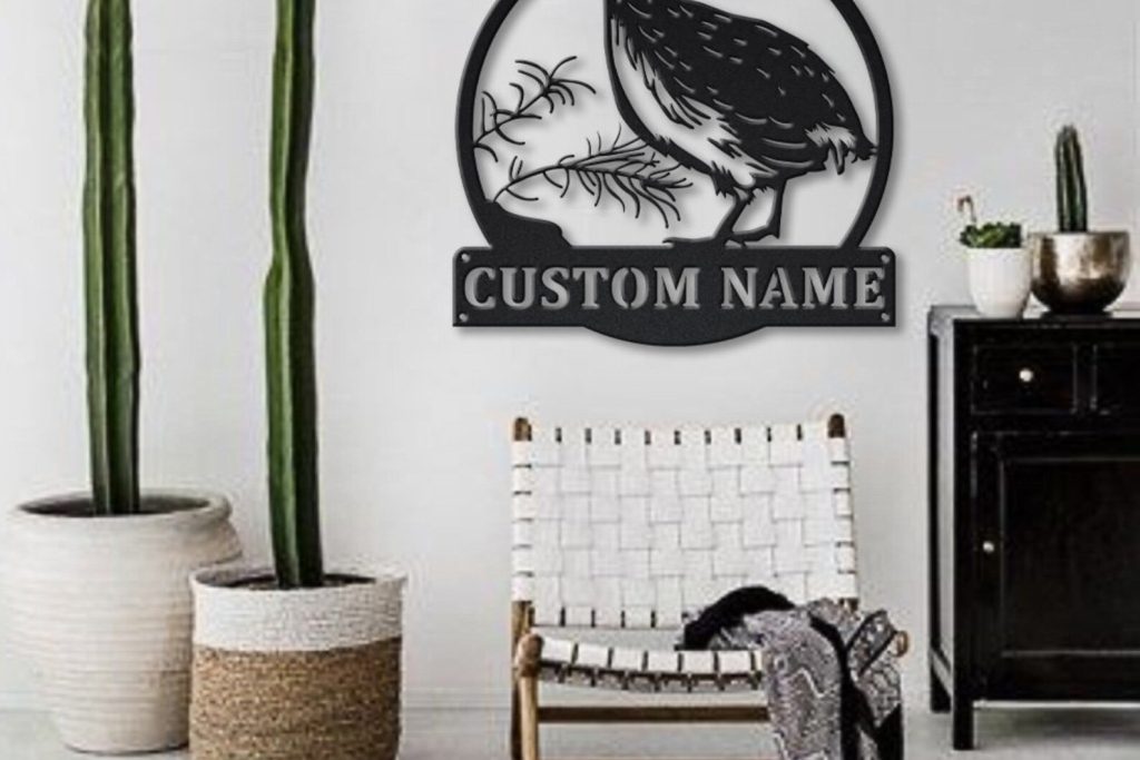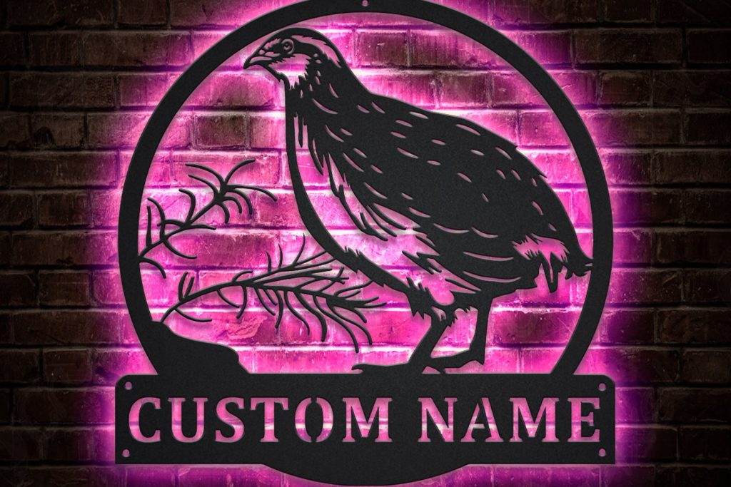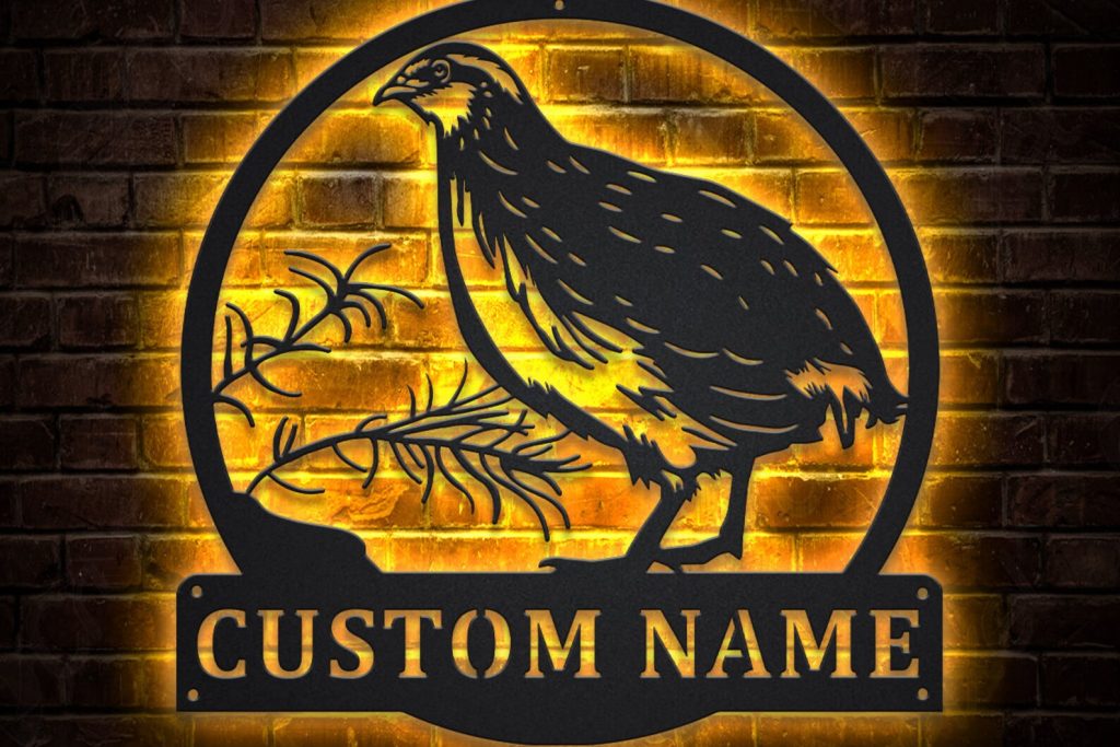 Custom Quail Bird Metal Wall Art with LED Lights, Personalized Name Sign