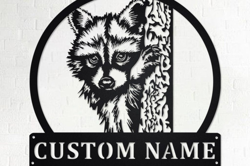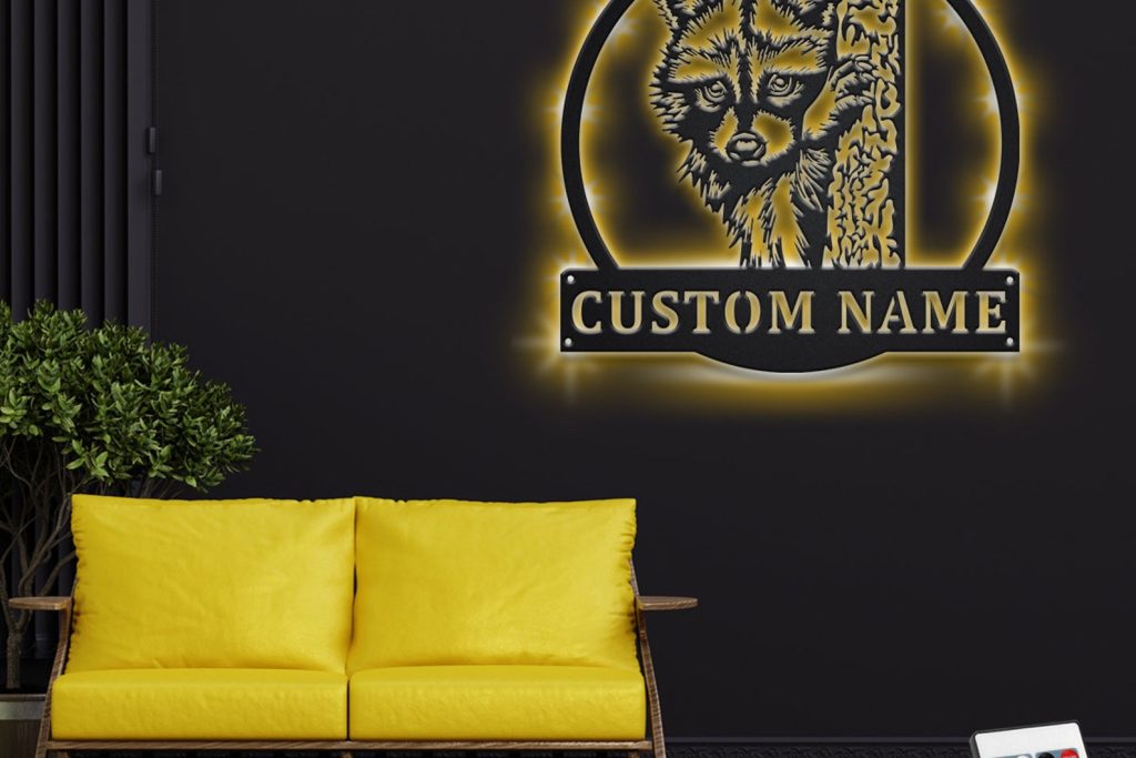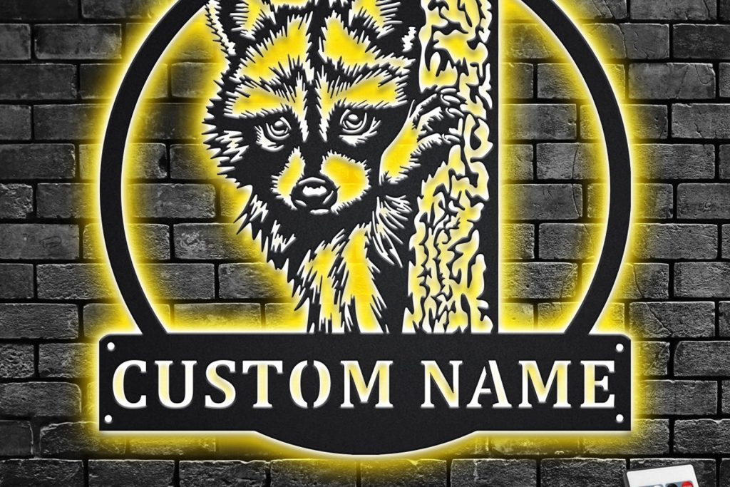 Custom Raccoon Metal Wall Art with LED Light, Personalized Name Sign