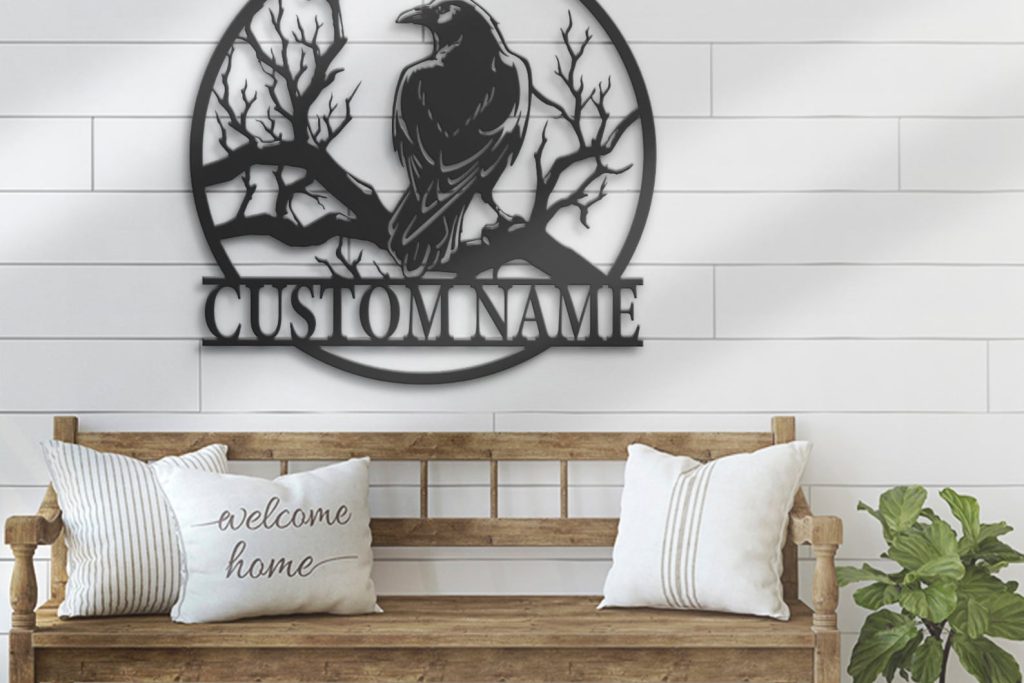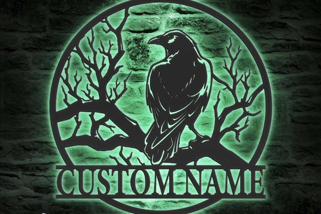 Be the first to review “Custom Raven Metal Wall Art – LED Light, Personalized Crow Moon Sign”
