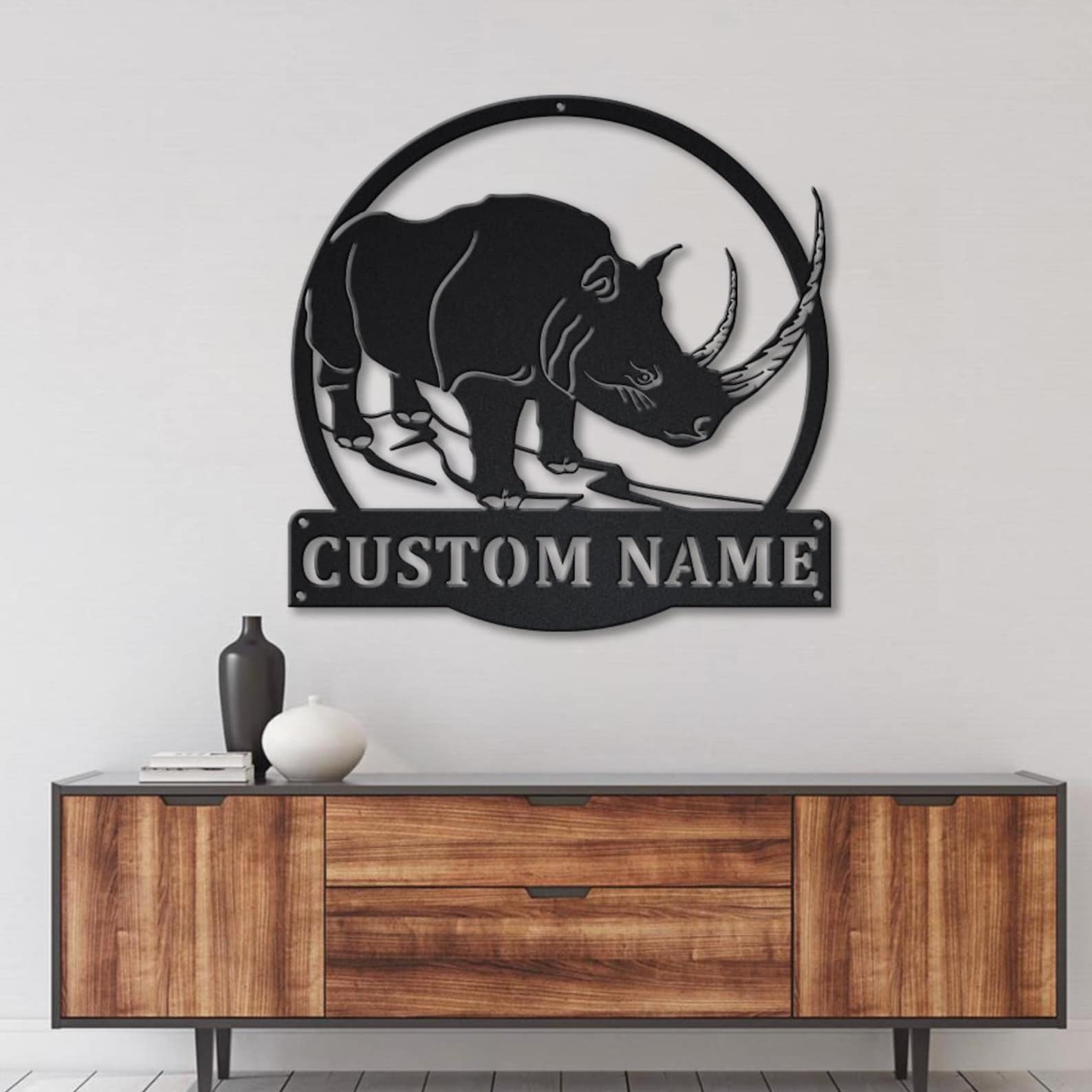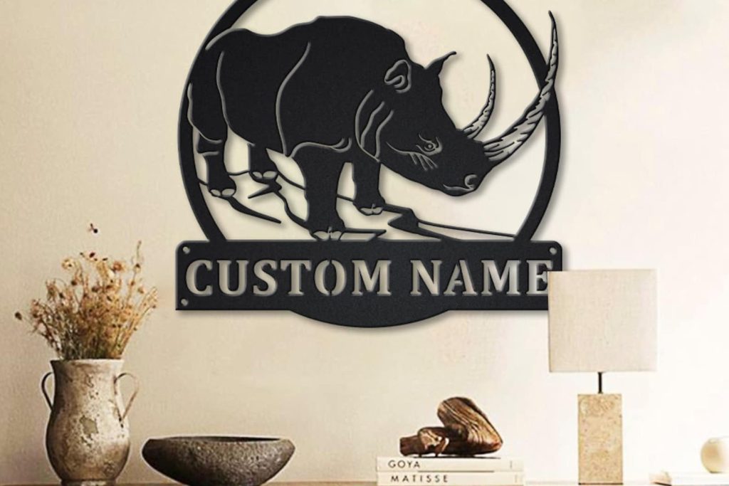 Custom Rhino Monogram Metal Sign