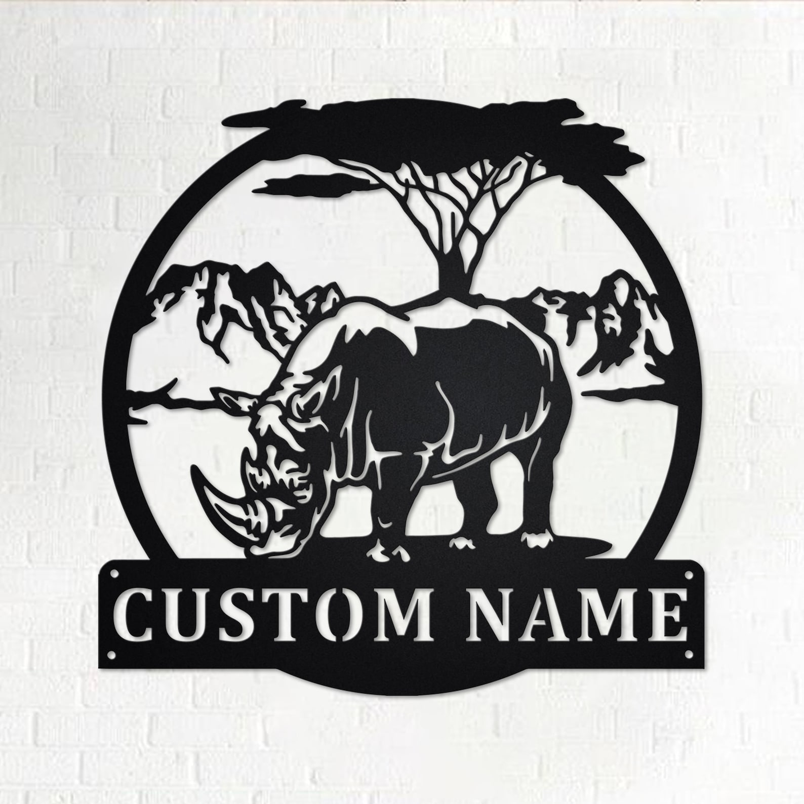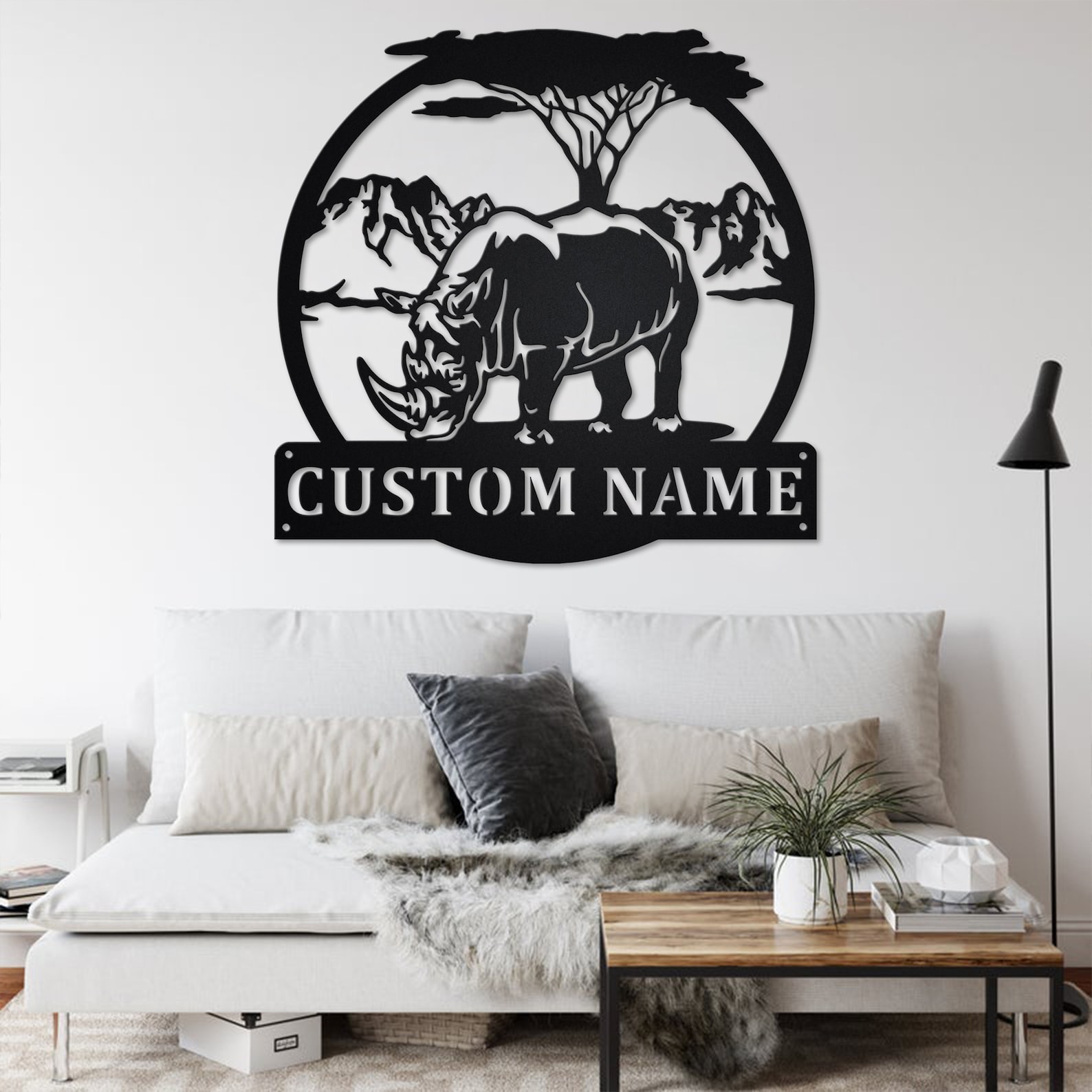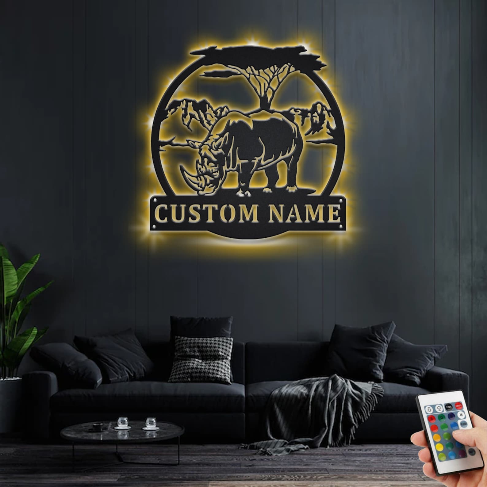 Custom Rhinoceros Metal Wall Art – LED Light, Personalized Decor