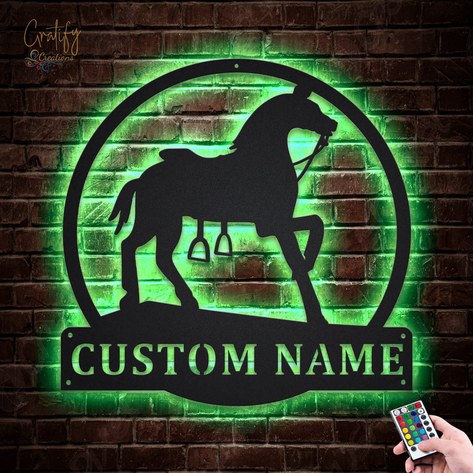 Custom Rocking Horse Metal Sign with LED V1 – Neon Decor