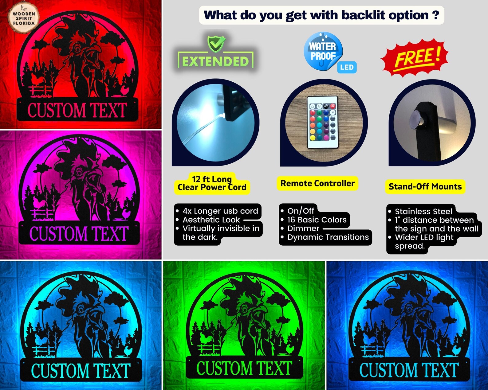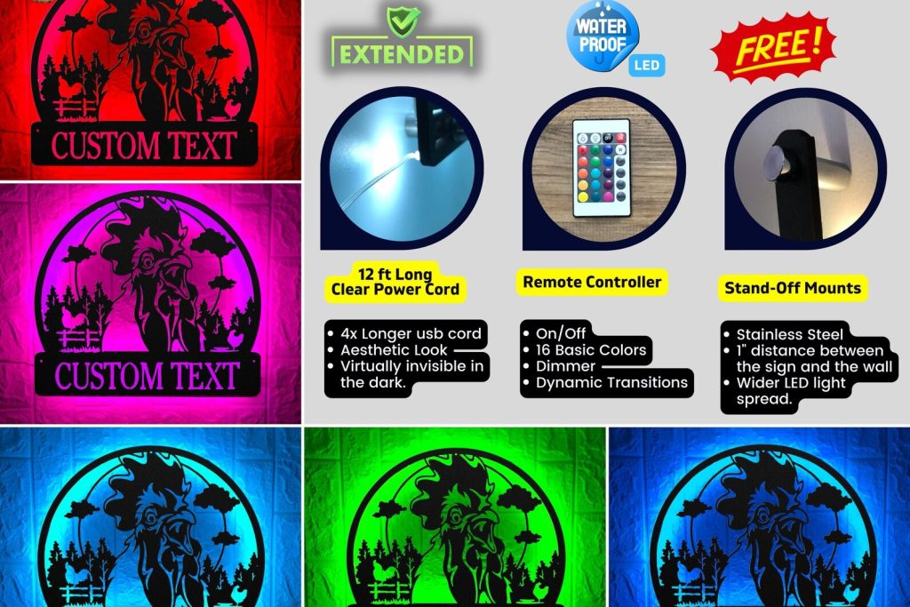 Be the first to review “Custom Rooster Metal Sign with LED – Farm Christmas Gift”