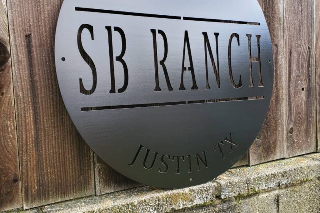 We do custom work as well. Made out of 12 gauge steel. Sign has a matte black finish and the size is 24 inch diameter. Perfect for any property entrance or wall decor. Built to hang from a post or mount wall.