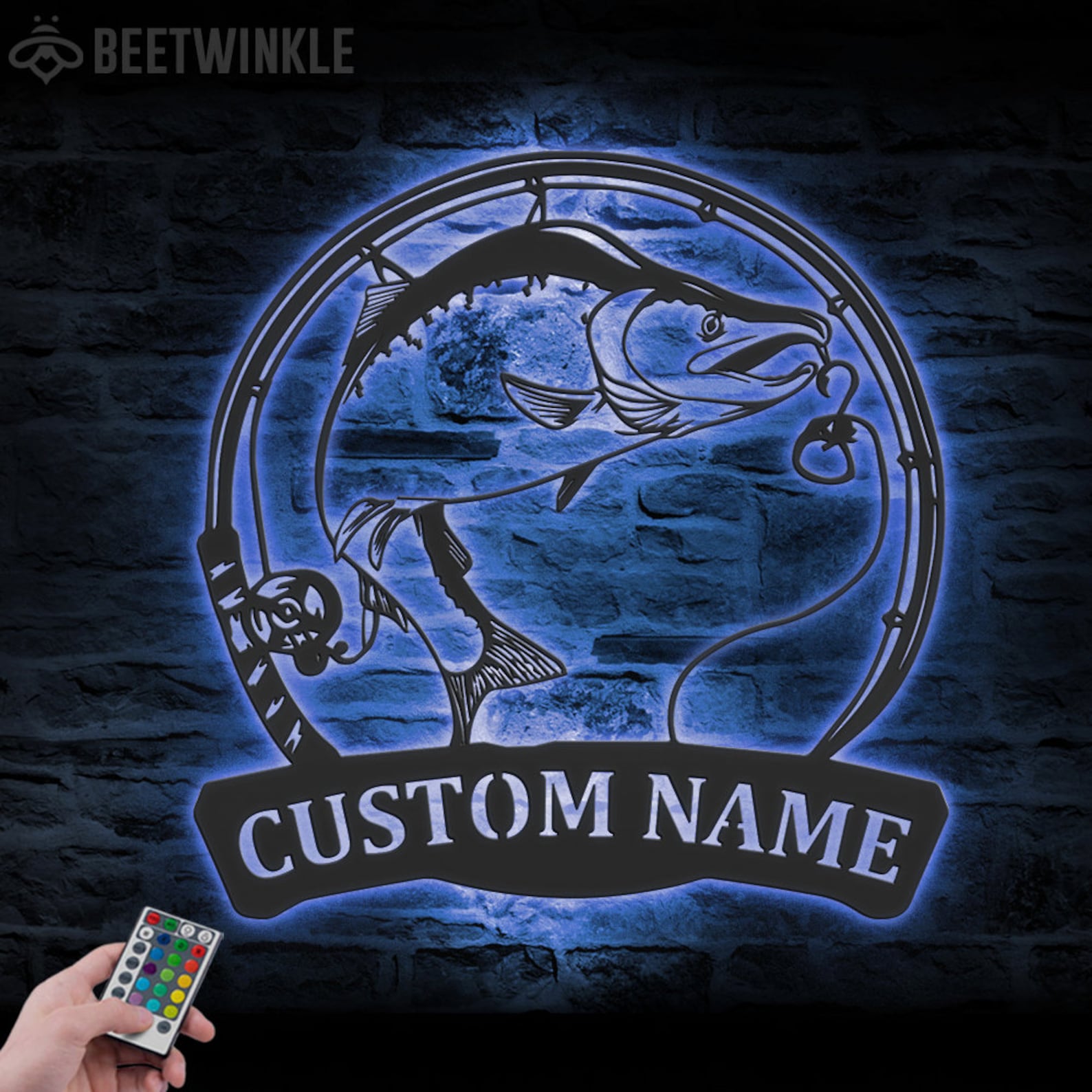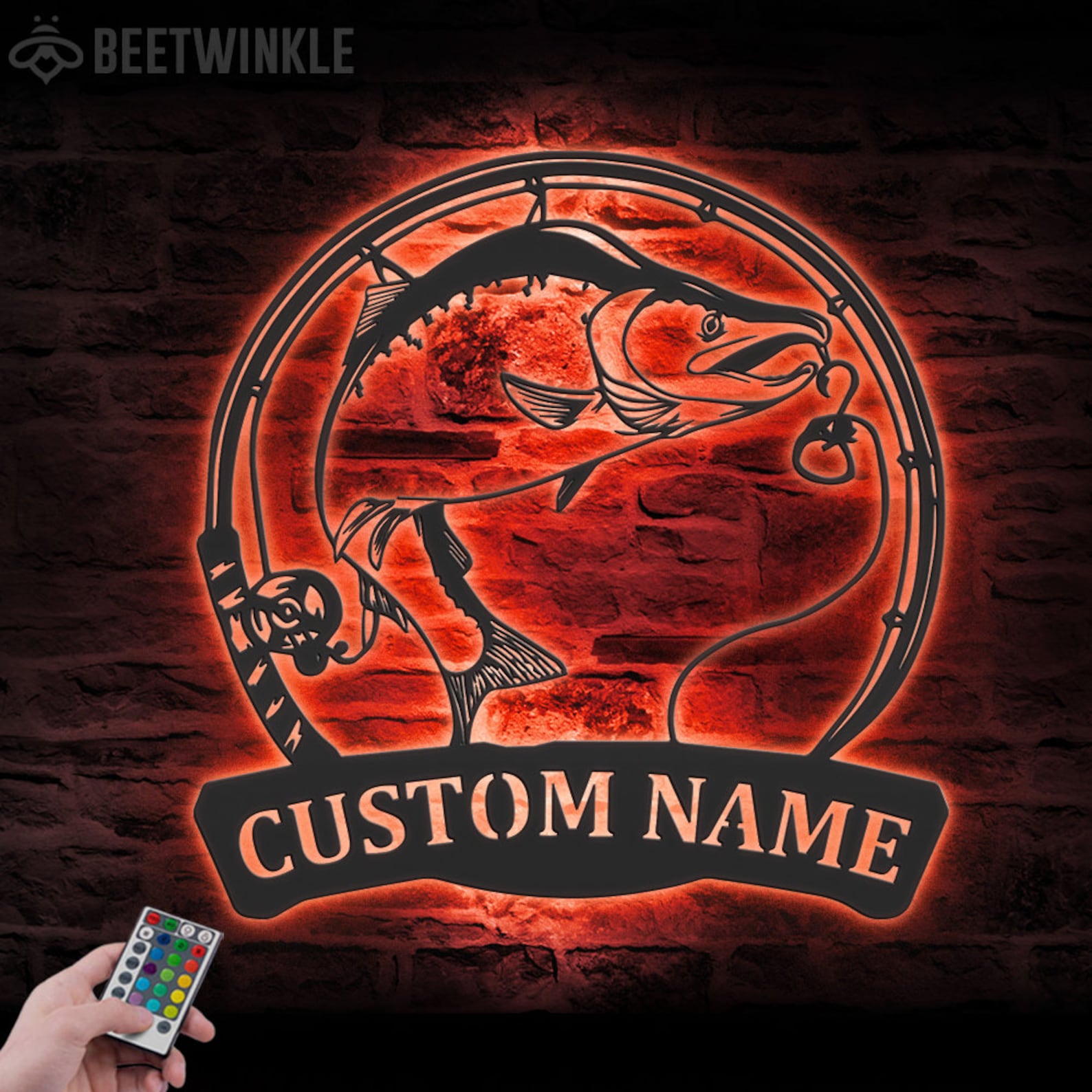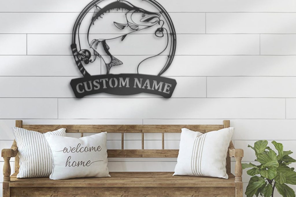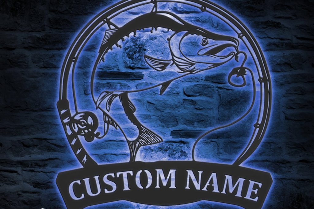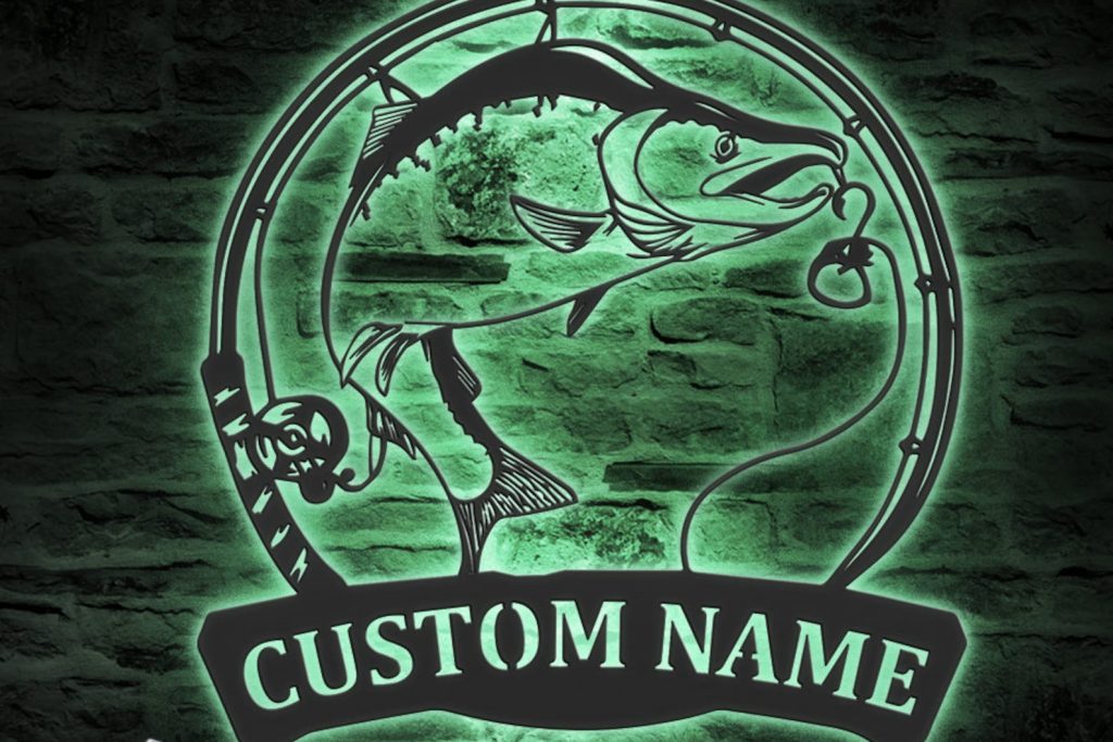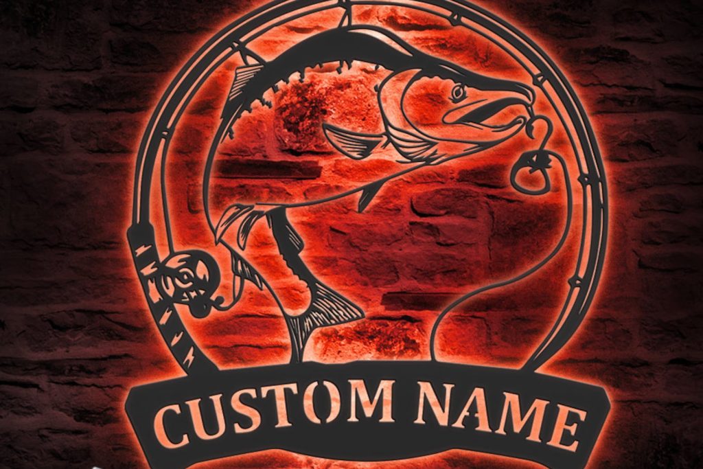 Custom Salmon Fishing Wall Art with LED – Fisher Name Sign