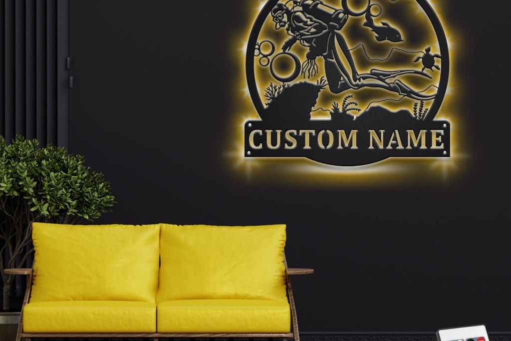 Be the first to review “Custom Scuba Diver Metal Art with LED Light”