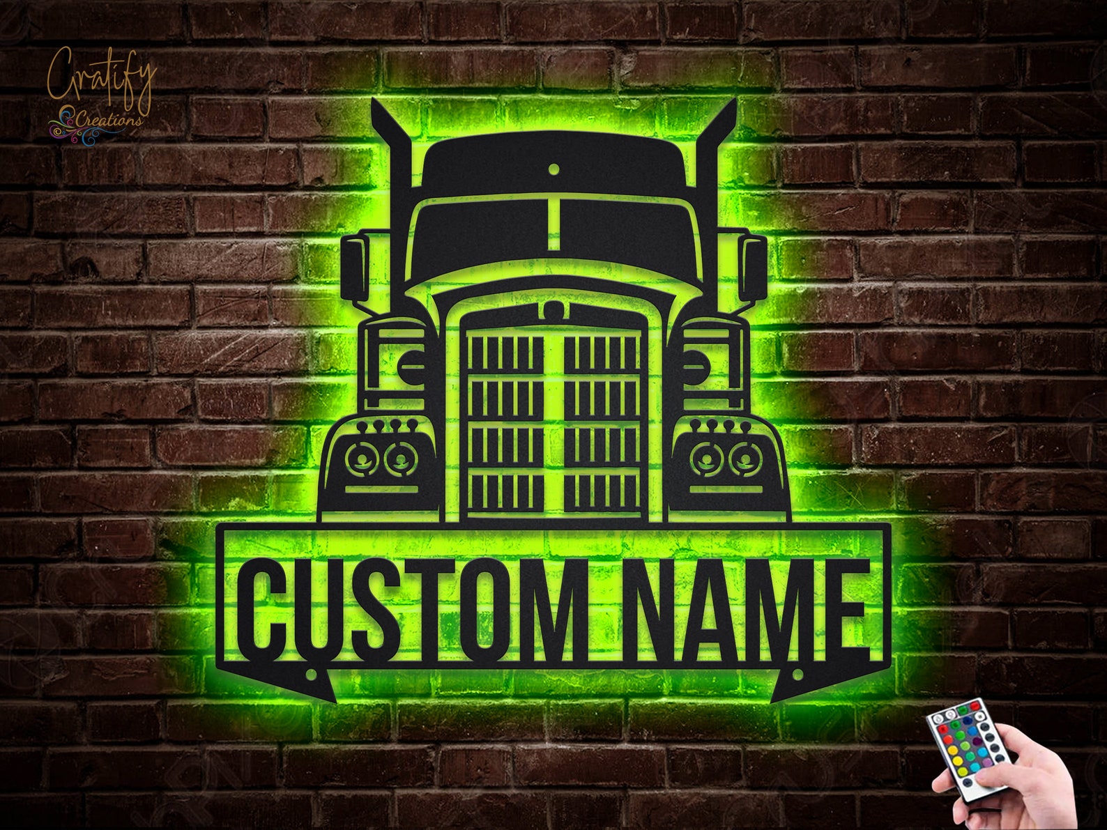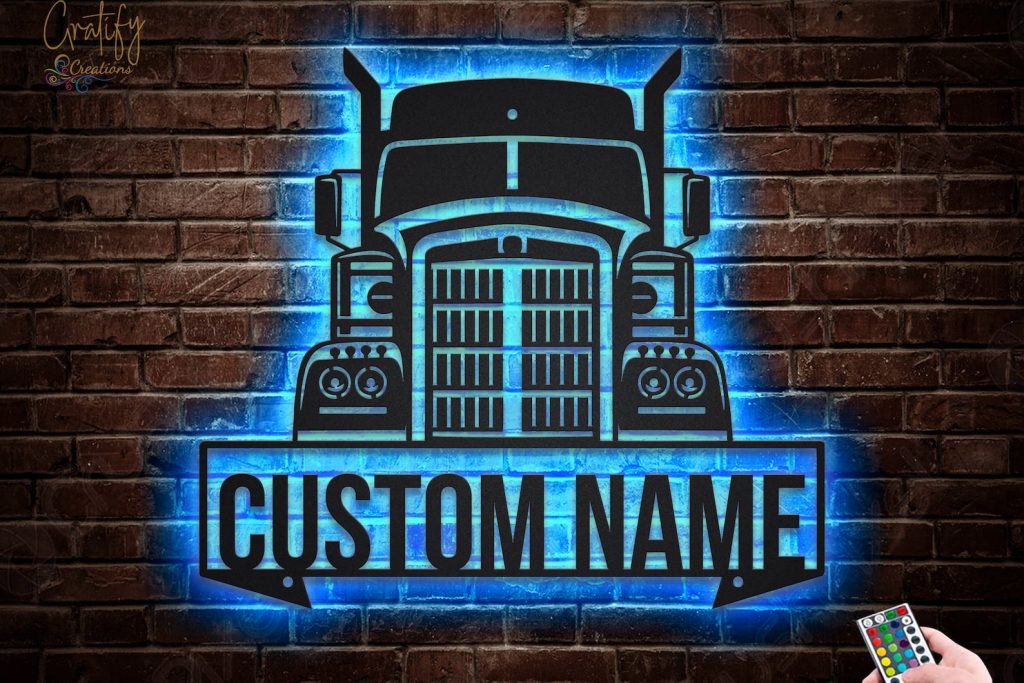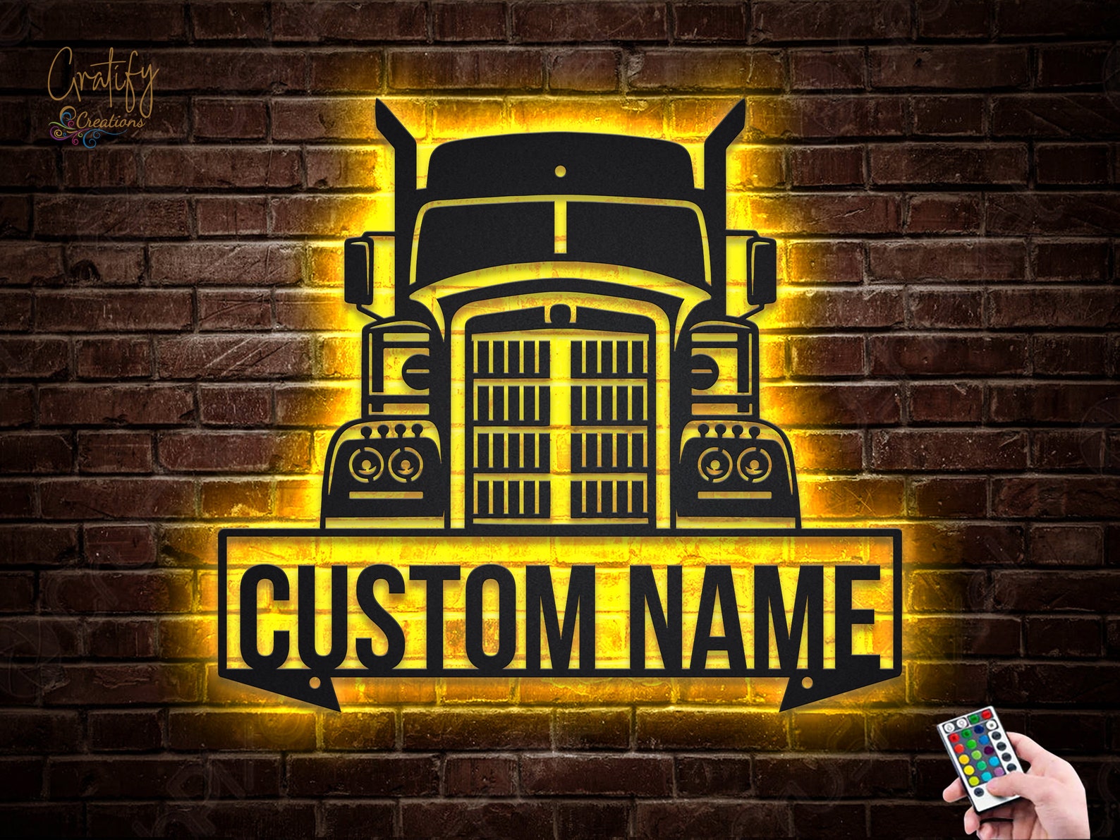 This stunning piece of metal wall art is perfect for any truck driver or trucking enthusiast, and can be customized with your truck drivers name.