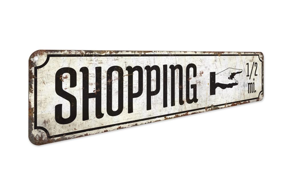 Custom Shopping Sign – Shopping Sign – Shopping Direction – Vintage Style Sign – Shop Half Mile – Premium Quality Rustic Metal Sign