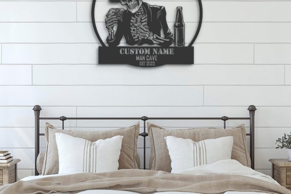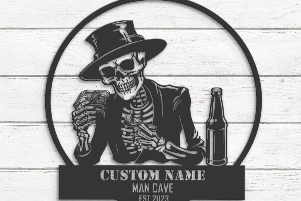 Be the first to review “Custom Skeleton Beer Cigar Dollars Metal Wall Art – LED Light, Personalized Sign”