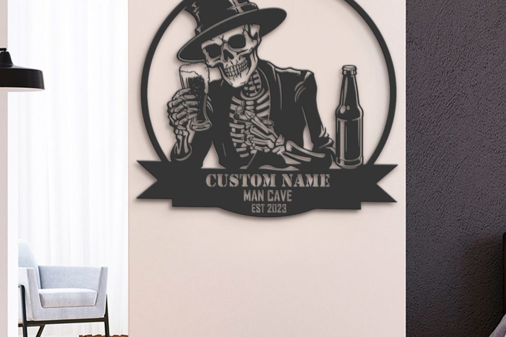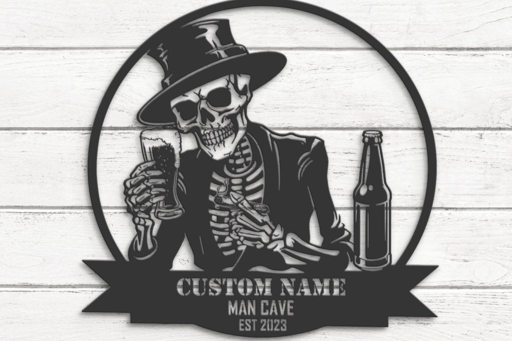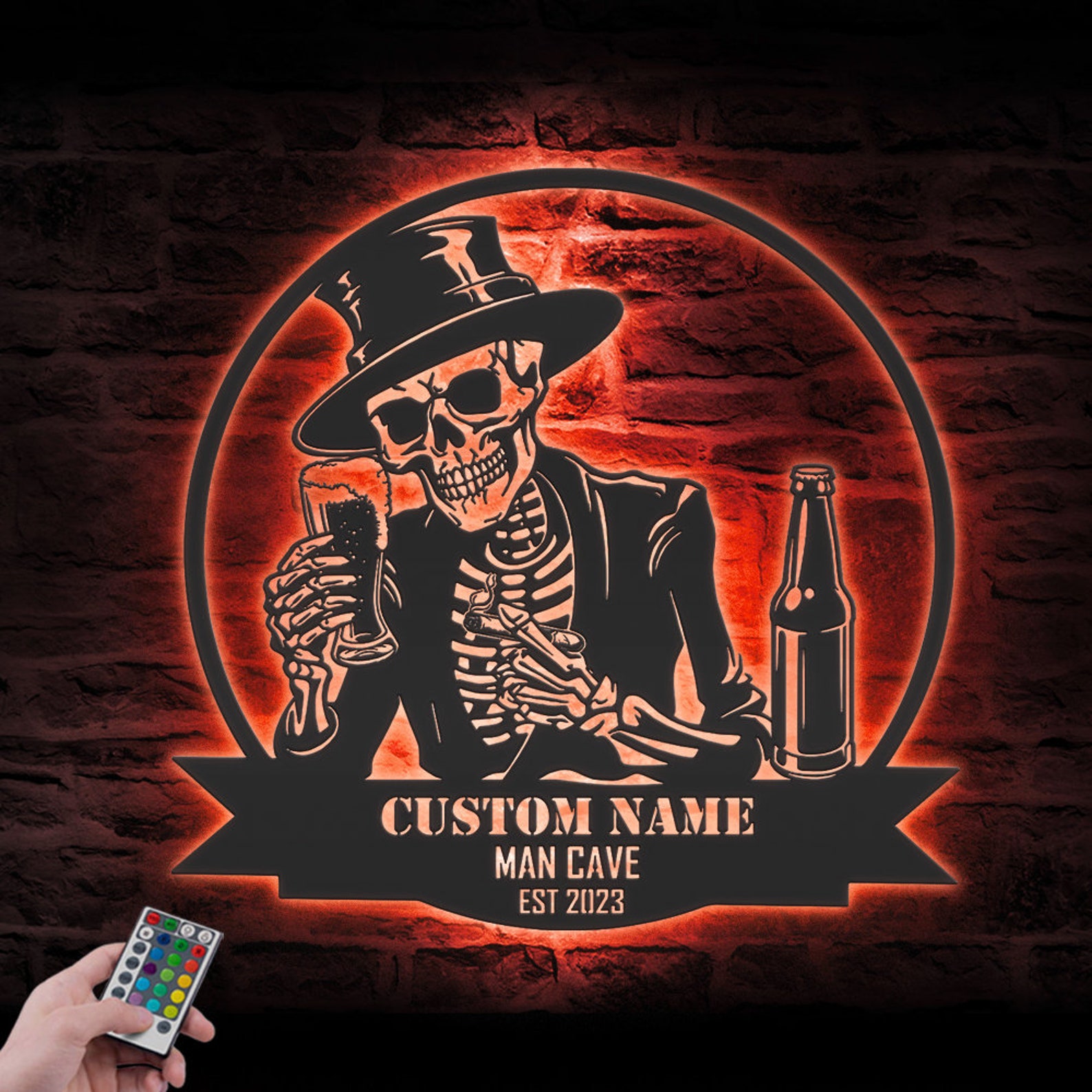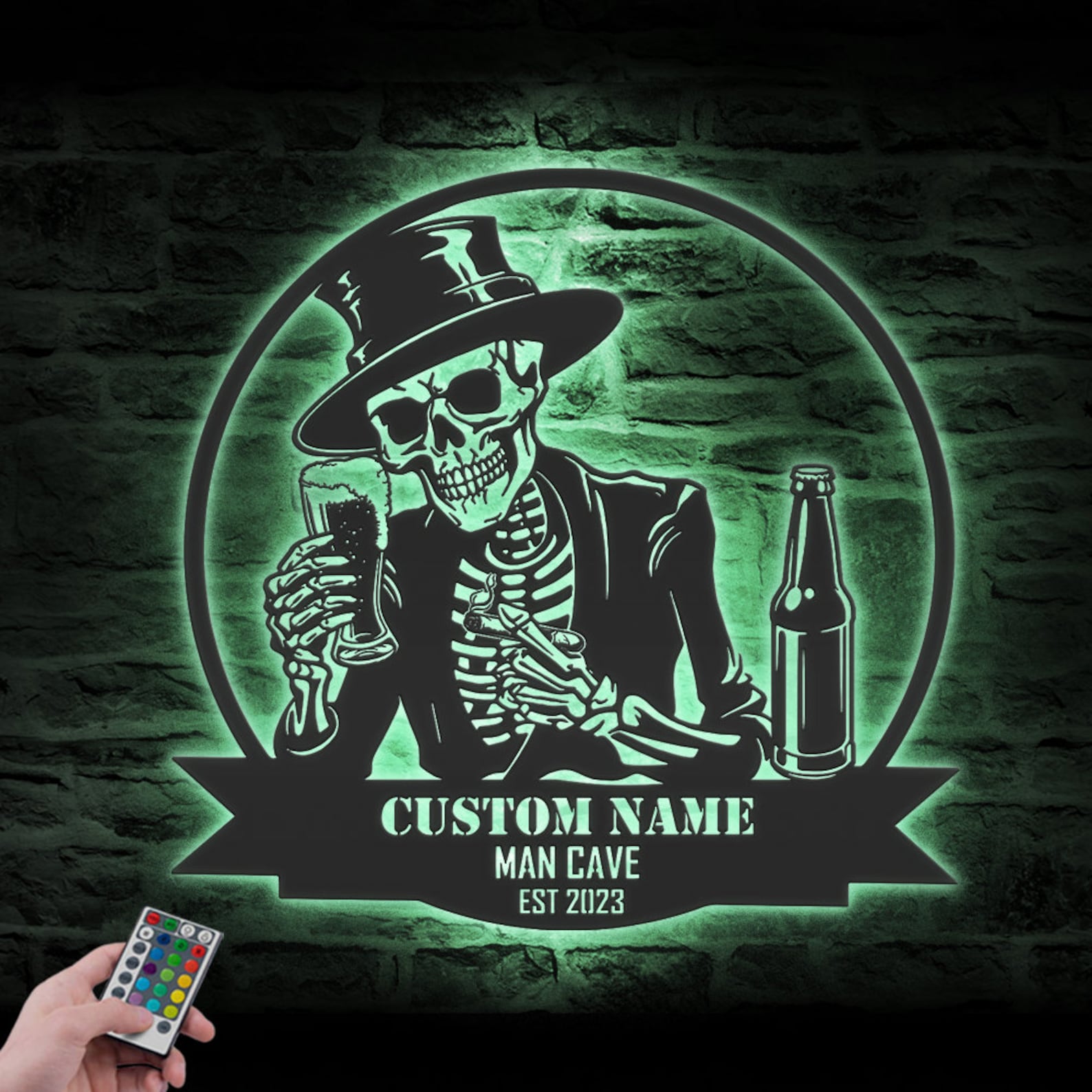 Be the first to review “Custom Skeleton Beer Cigar Metal Wall Art – LED Light, Man Cave Decor”