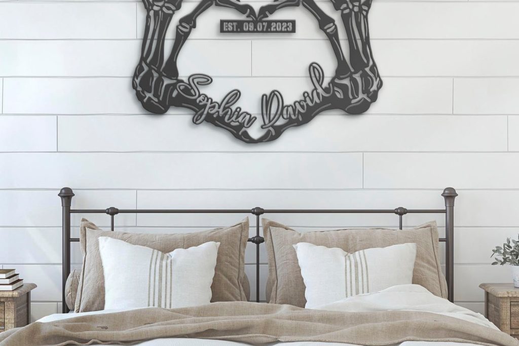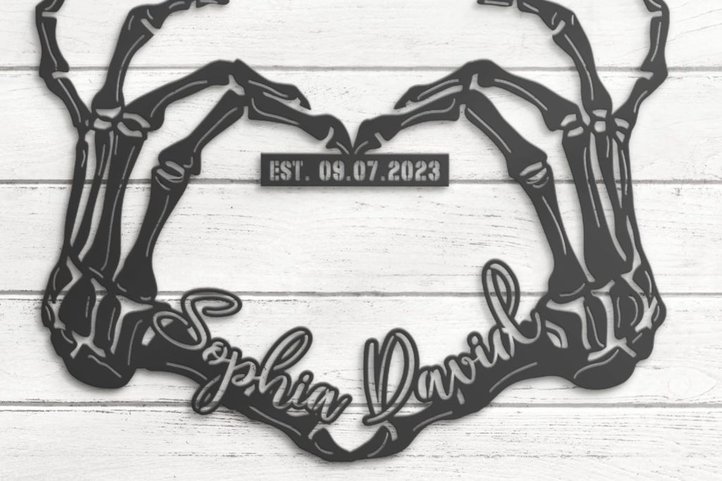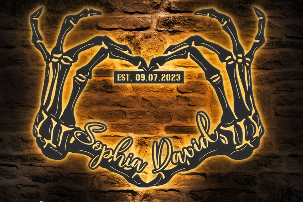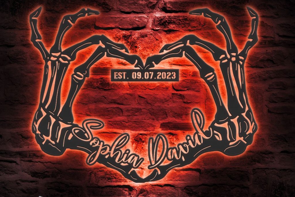 Custom Skeleton Hand Heart Metal Sign with LED – Halloween